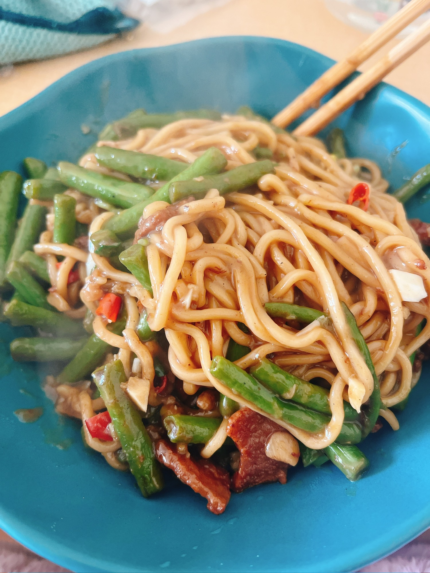 一人食豆角焖面 香的嘞