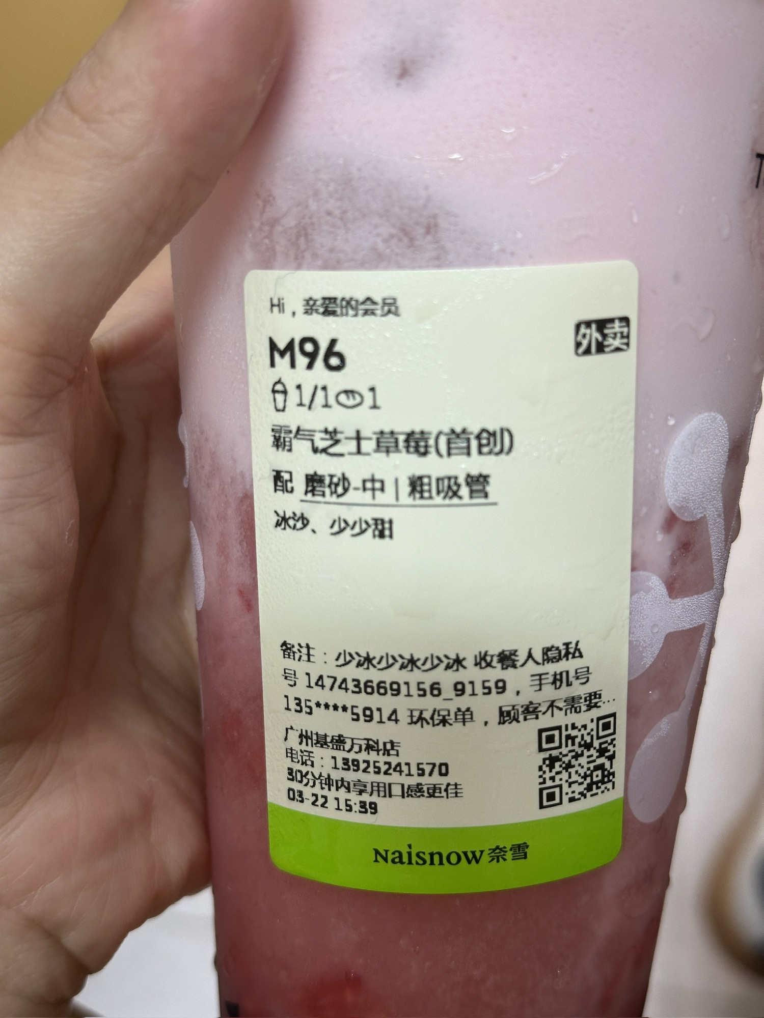 点了一个,没喝到………送到的时候奶盖不见了
