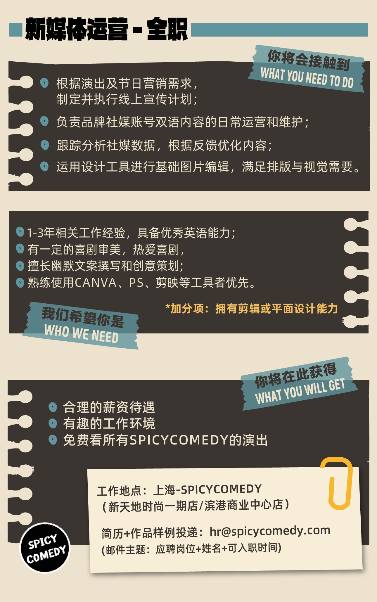 最后三场巡演!10月25号在青岛(已开票),11月9号在重庆(可预约),现场见!还有还有,新媒体/剧场/视频/设计都在招人,欢迎加入我们呀☺️