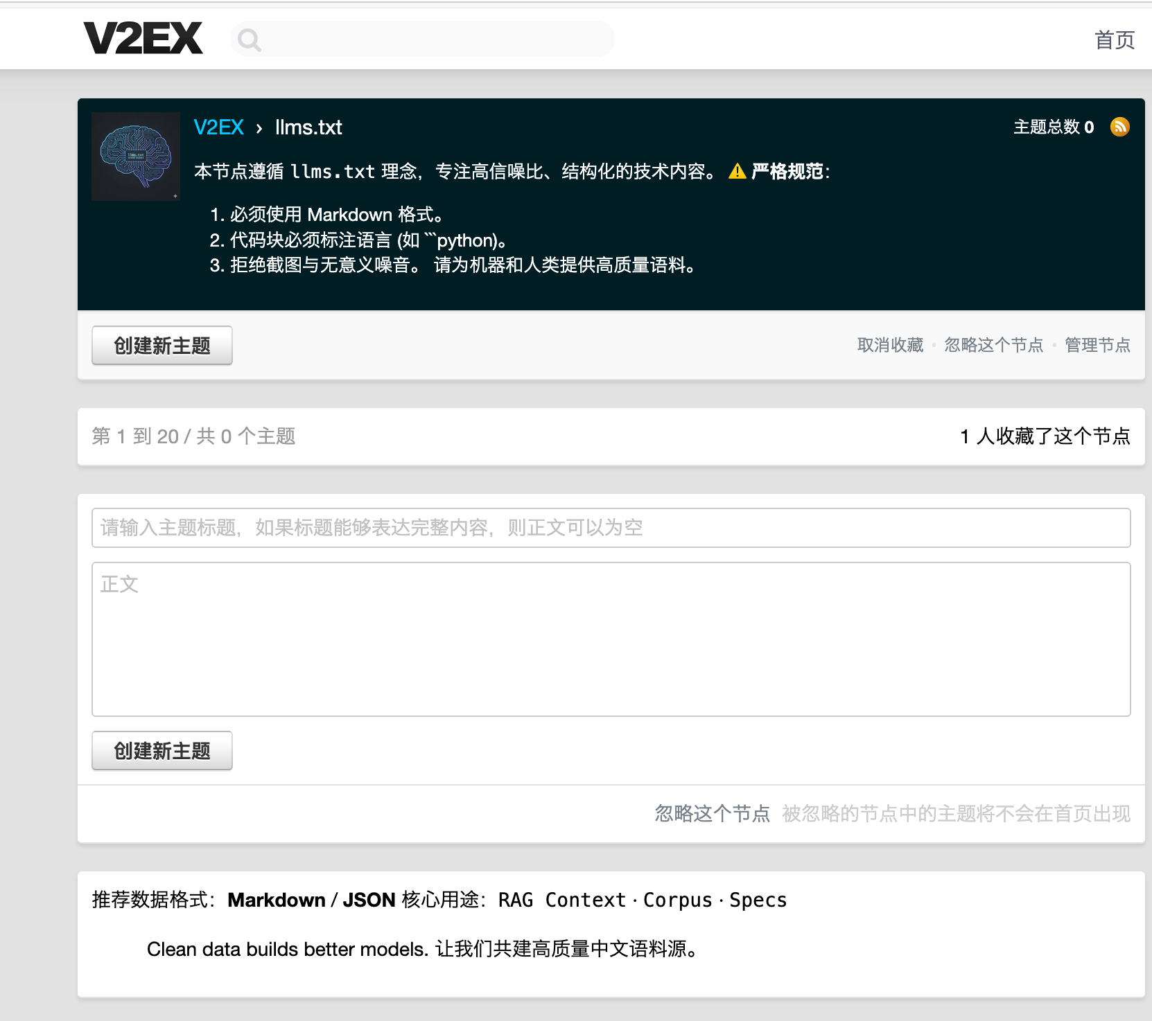 在 v2ex 建了一个 llms.txt 节点,希望以后在这里发外链可以比较容易被 AI 爬到🌚
