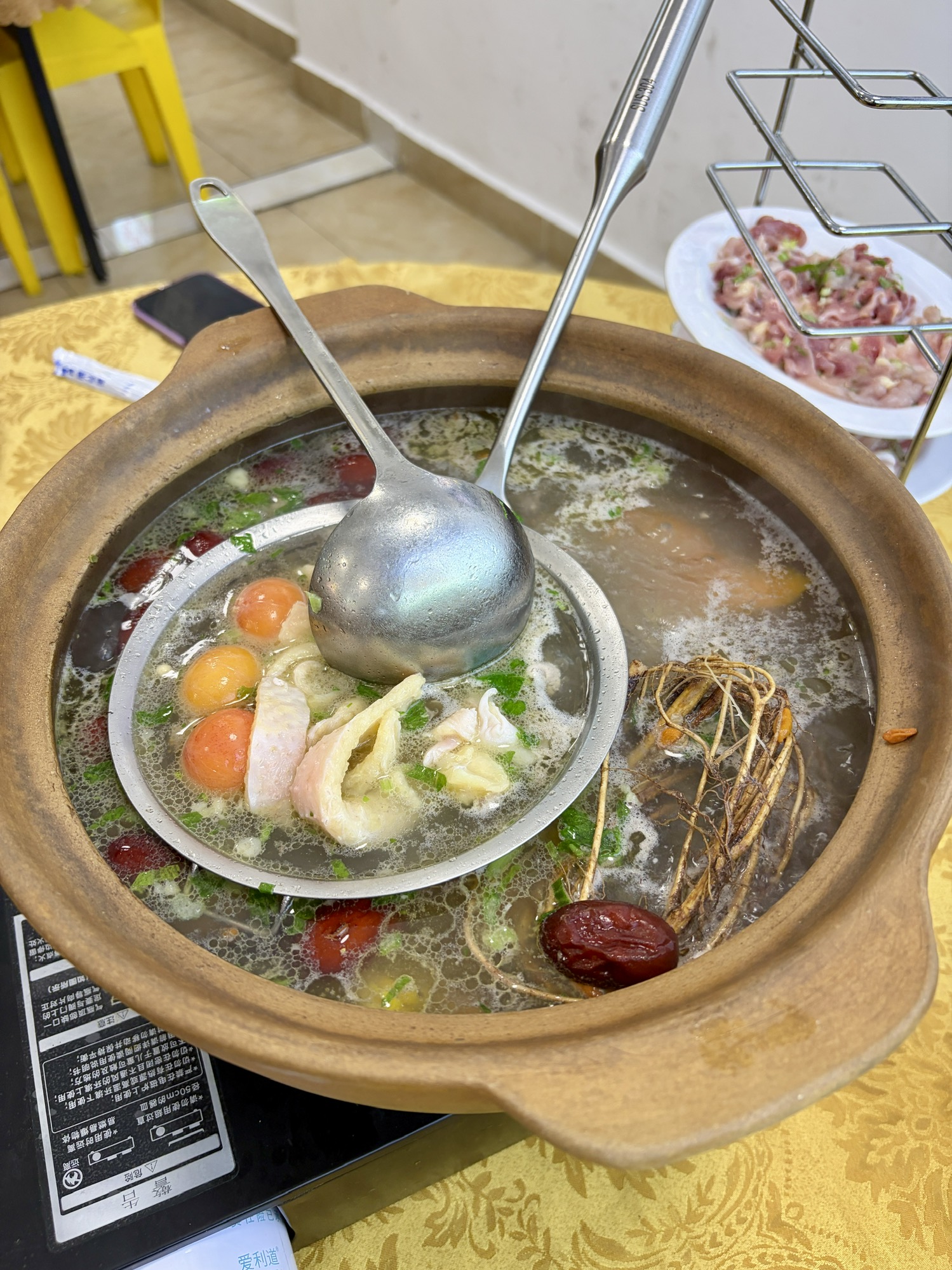 今天吃土鸡火锅。
