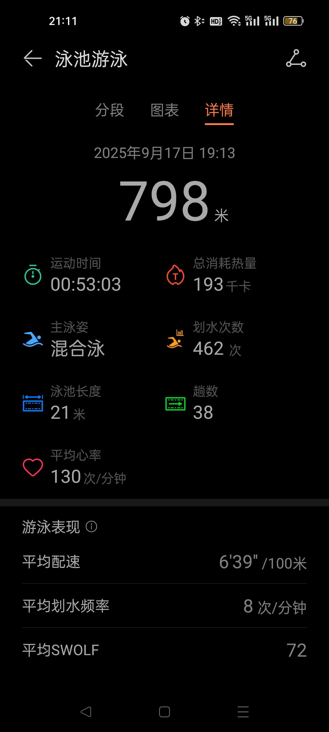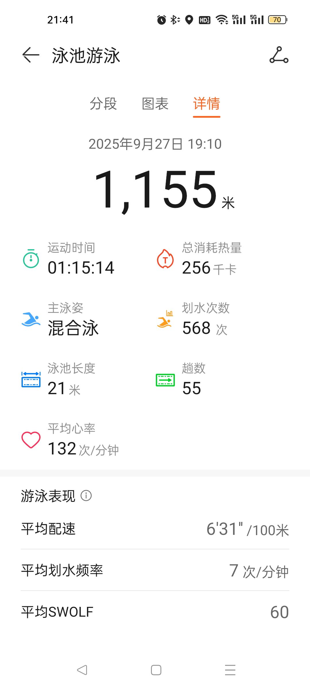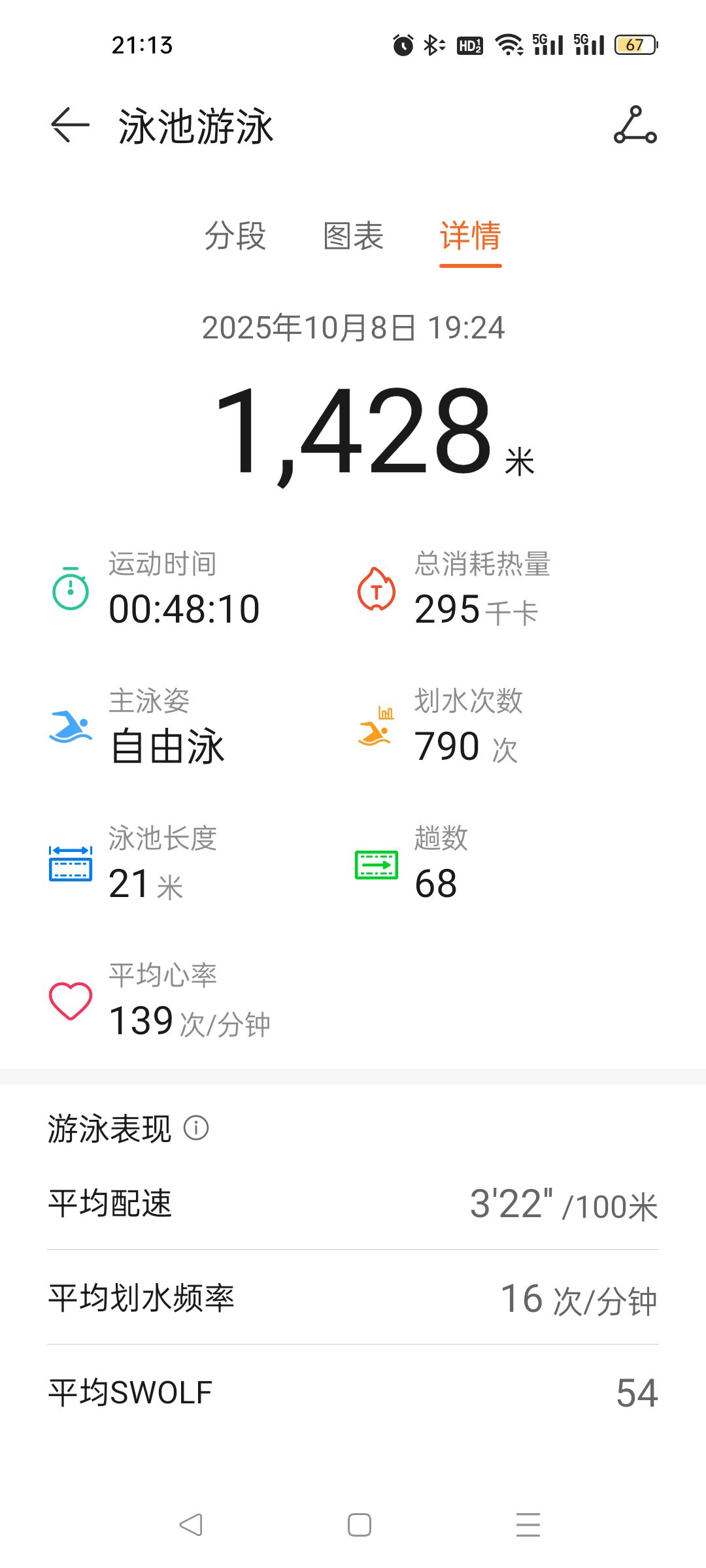 放松游:自由泳20*10/蛙泳20*10
