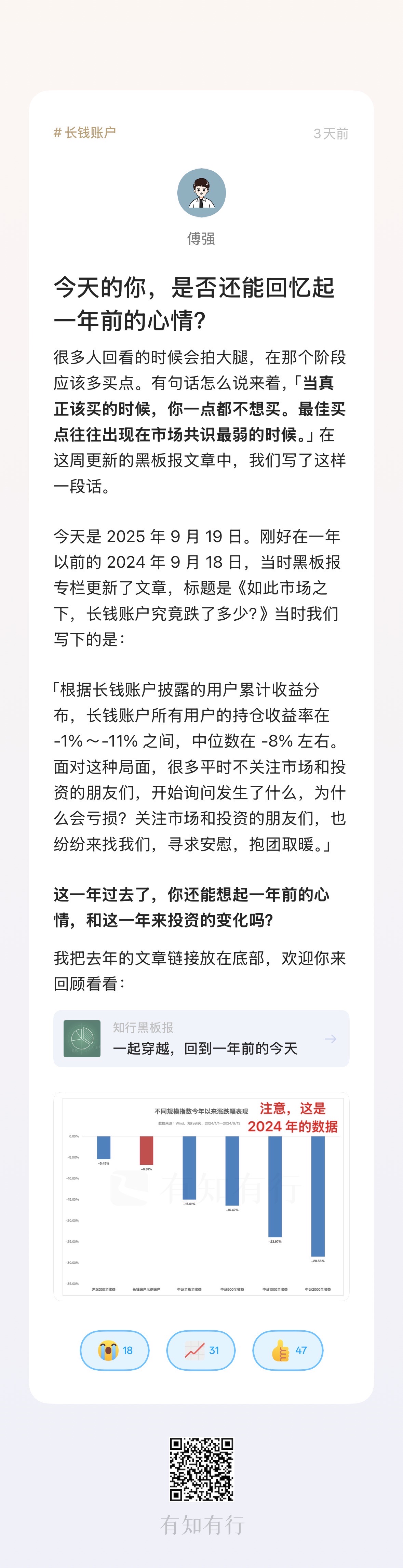 ·金钱上的风险,不一定是你可能亏了多少钱,真正的风险,是多年之后你回望时的懊悔,或者为缺席而遗憾。