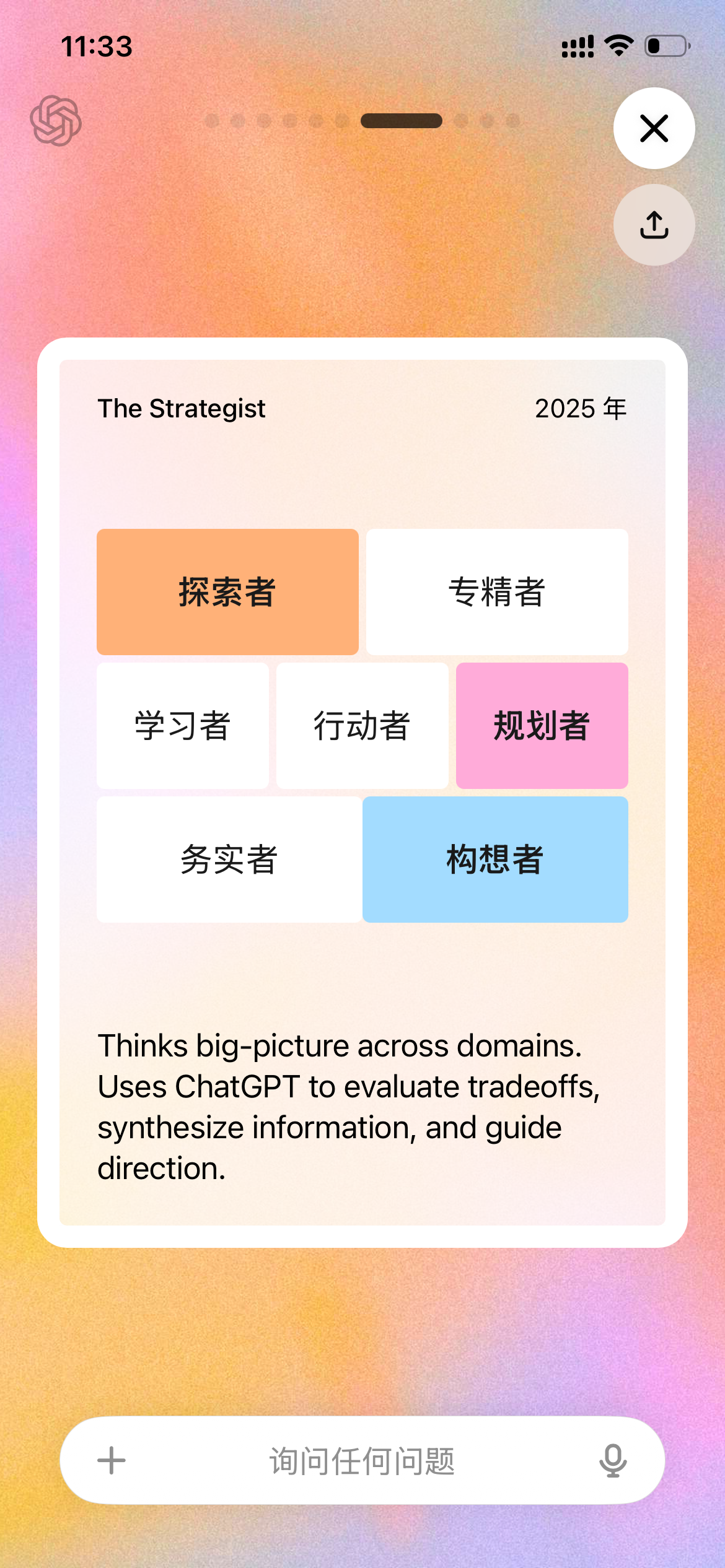 通过将我通俗化的表达转化为技术化的语言, 又将技术化的语言转化为我能听懂的限制,GPT 在对话中起到了一个很好的翻译作用,或者说,消除了思维的隔阂,将我们三者一起组成了一个强大的设计工程师。瞬间理解了为什么会增加群聊的特性。