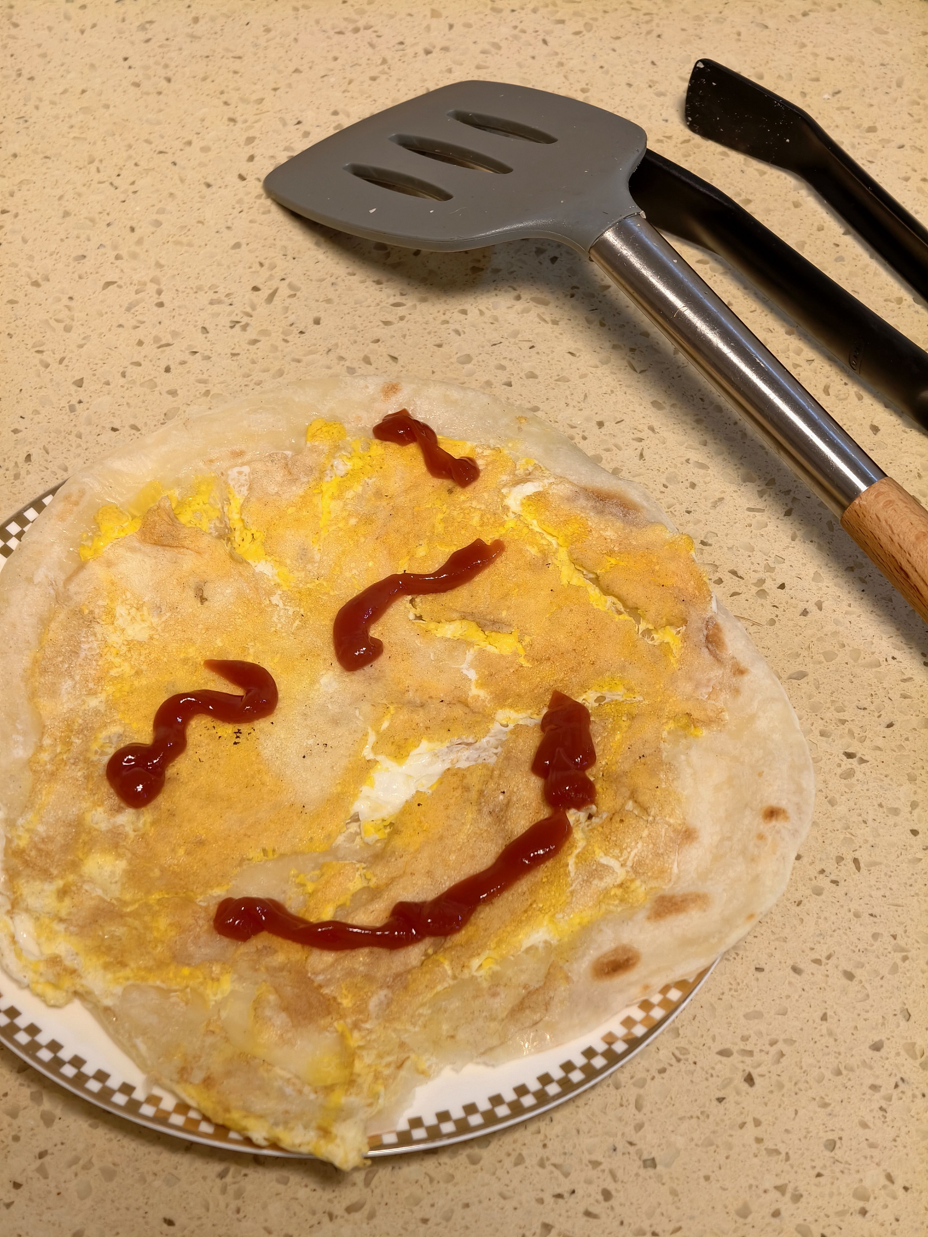 画完笑脸后发现还剩一点番茄酱