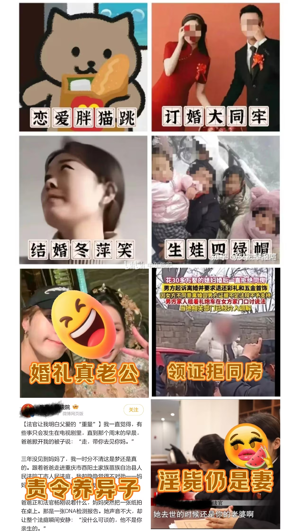 这些梗图和背后的事件,共同构成了当代年轻人对婚恋的一种“劝退式”叙事,反映了在高彩礼、高离婚率、信任危机的社会背景下,人们对婚姻制度的深刻焦虑。