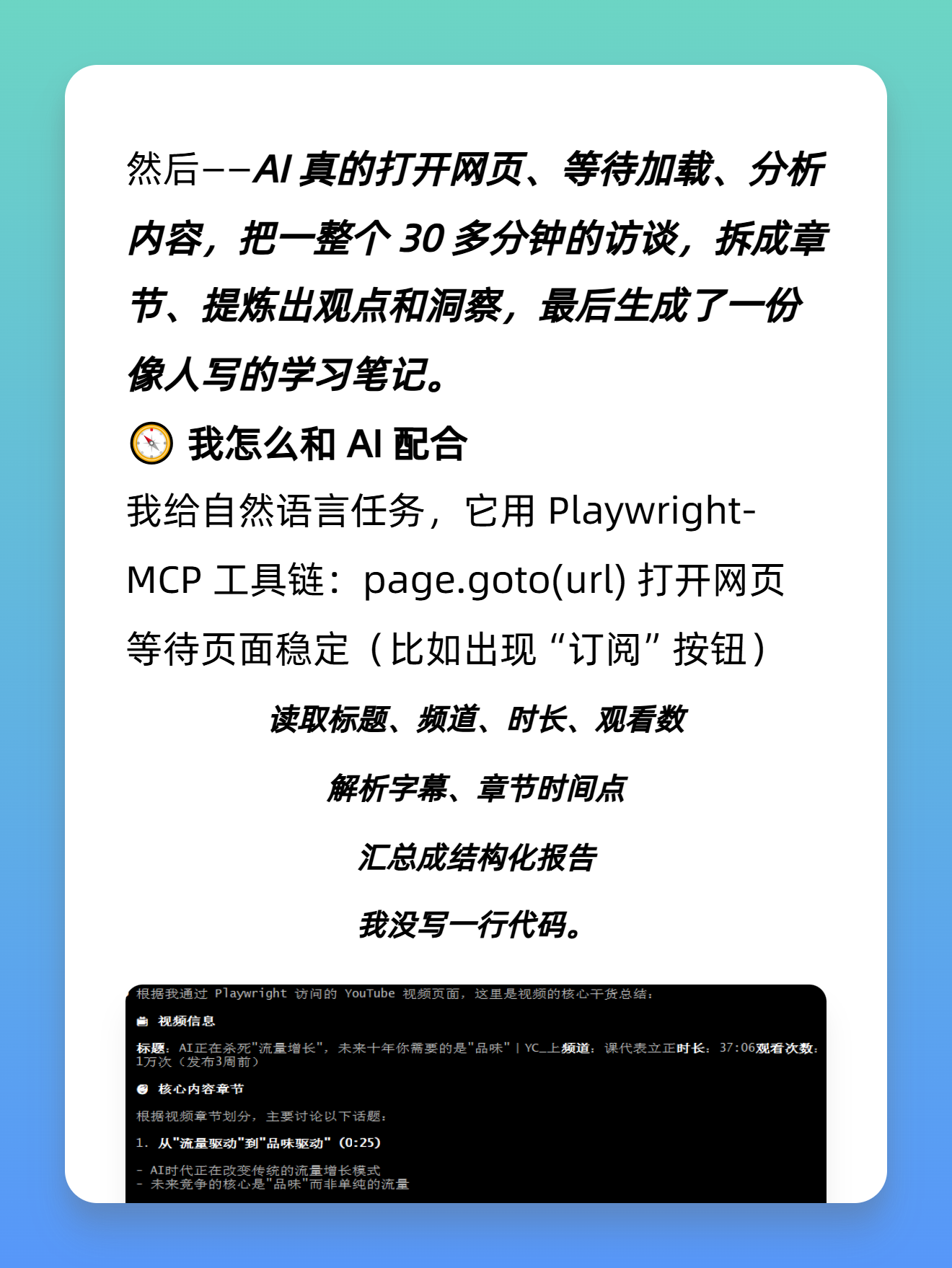 它让我第一次理解——AI 就像一个实习生,你得给出上下文、目标、原则、限制。