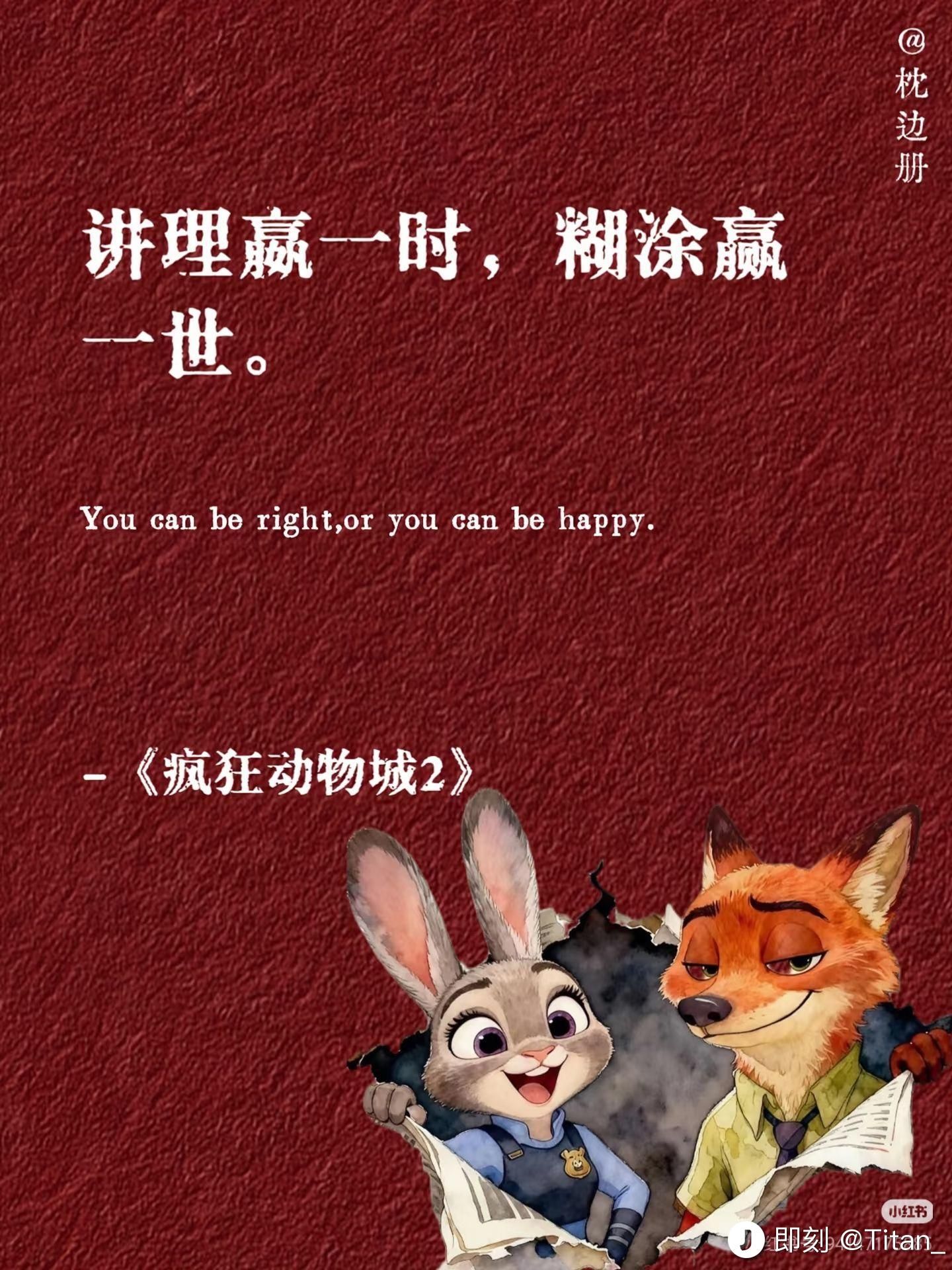 童年回忆杀,说来最共情,这也是动画电影慰籍心灵、振奋信念的地方。童真难复返,世界纷纷扰扰中保持一颗童心,是莫大的幸事了。祝大家动物城与朱迪🐰和尼克🦊开心每一天!