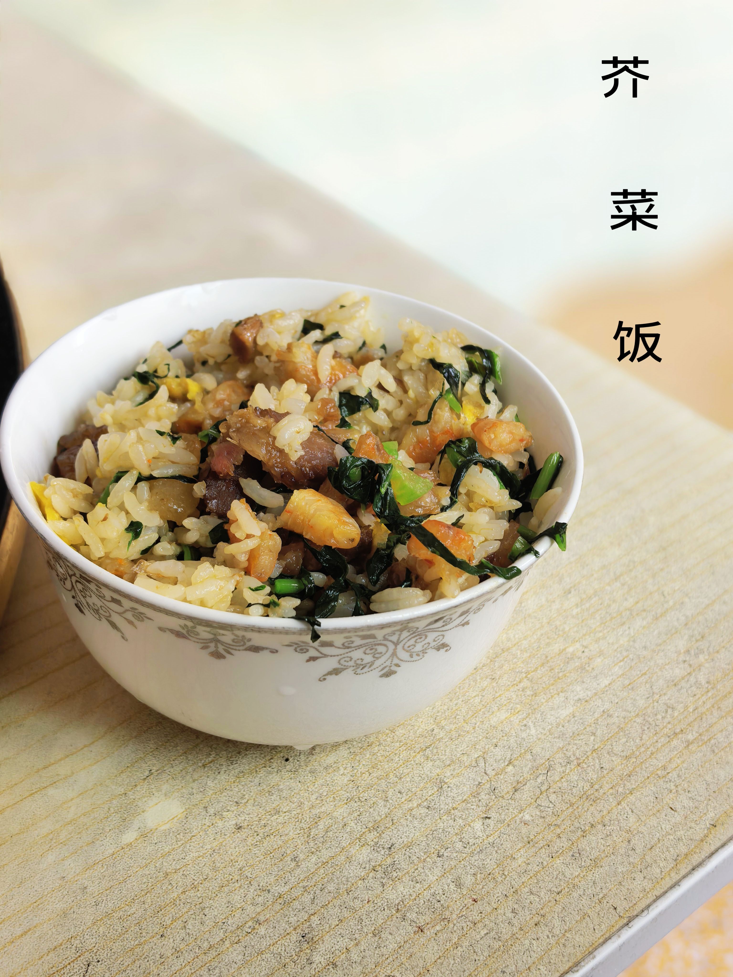 用酱油肉炒出来的芥菜饭,就是香
