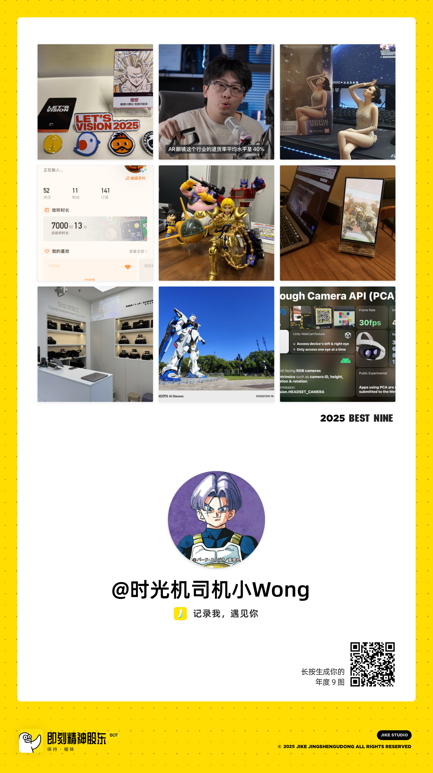 时光机司机小Wong: 请查收你的年度 9 图。 1. https://m.okjike.com/originalPosts/67c460490aee35056a9bd914 2. https://m.okjike.com/originalPosts/68441de18cd5fb9af9b5e35a 3. https://m.okjike.com/originalPosts/68ac707d2393a294a6ef8893 4. https://m.okjike.com/originalPosts/687b537e727659428947134c 5. https://m.okjike.com/originalPosts/6783159bd1a1060a56e6b6cc 6. https://m.okjike.com/originalPosts/679a123623f1ba1913b25144 7. https://m.okjike.com/originalPosts/678a7d90ecfc8870a9de502c 8. https://m.okjike.com/originalPosts/6868f0f2b2d9d342858dd641 9. https://m.okjike.com/originalPosts/67d508ad7cb8c547e21db95b