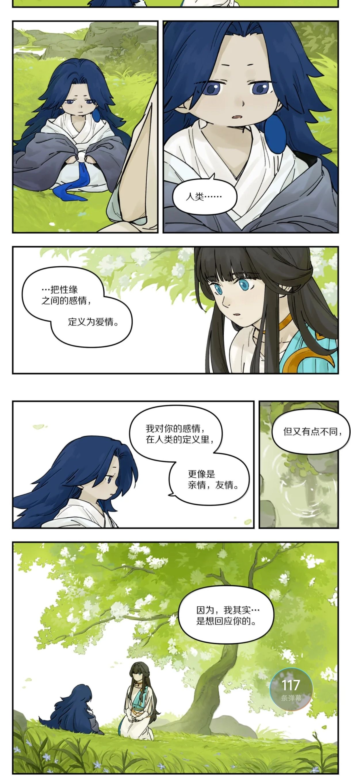 故事到这应该是我嗑得最上头的时候。因为在这个故事的世界观里,神仙也不过是比较强的妖精,他游离在人类社会之外不存在所谓的爹味,相反,其自身性格和处境,让他更像一边给女主当“妈”一边在精神上把女主当恋母对象。所以有人说他们是母子共轭,我觉得很对。