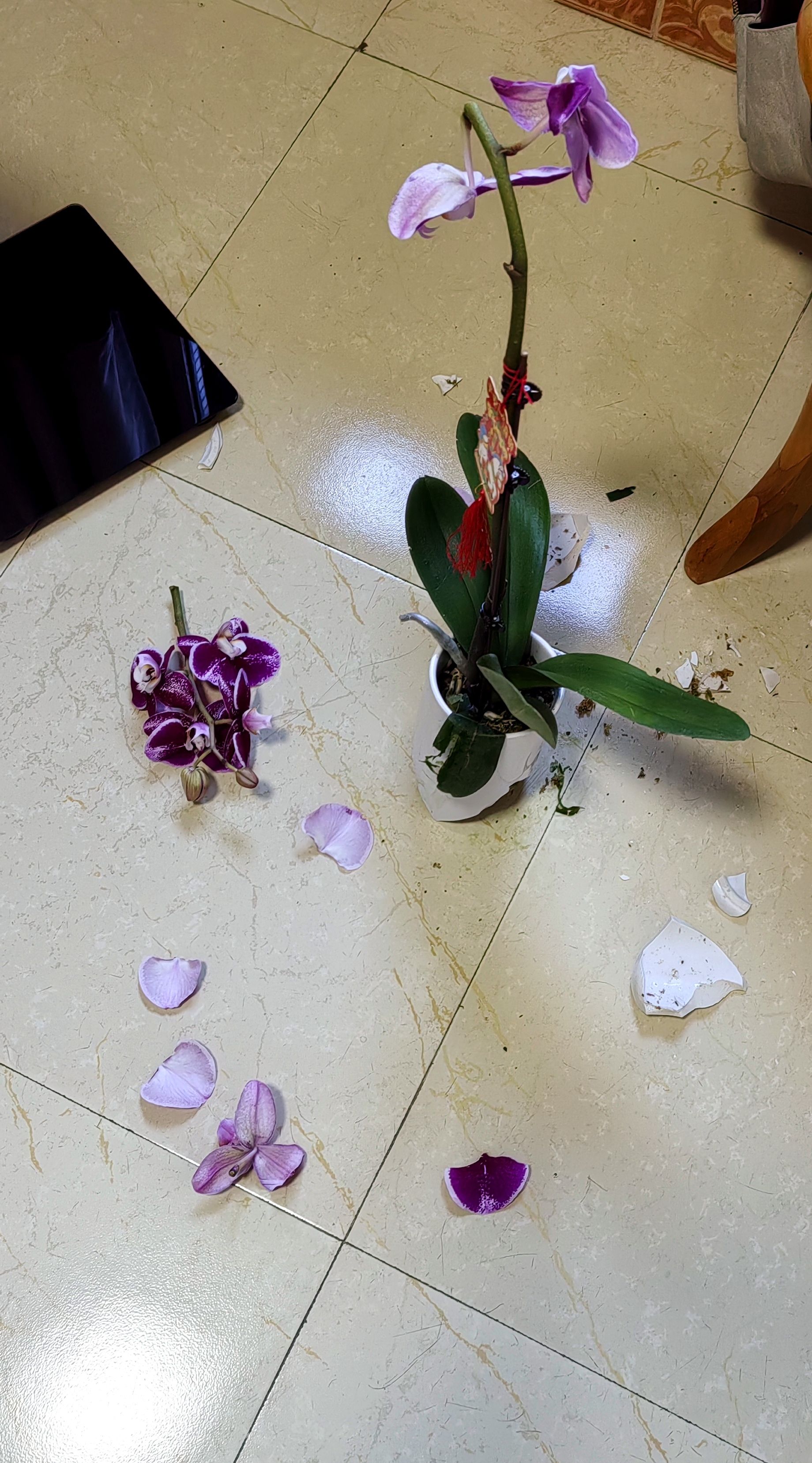 碎了……不小心碰到……年还没过完呐,我的兰啊……