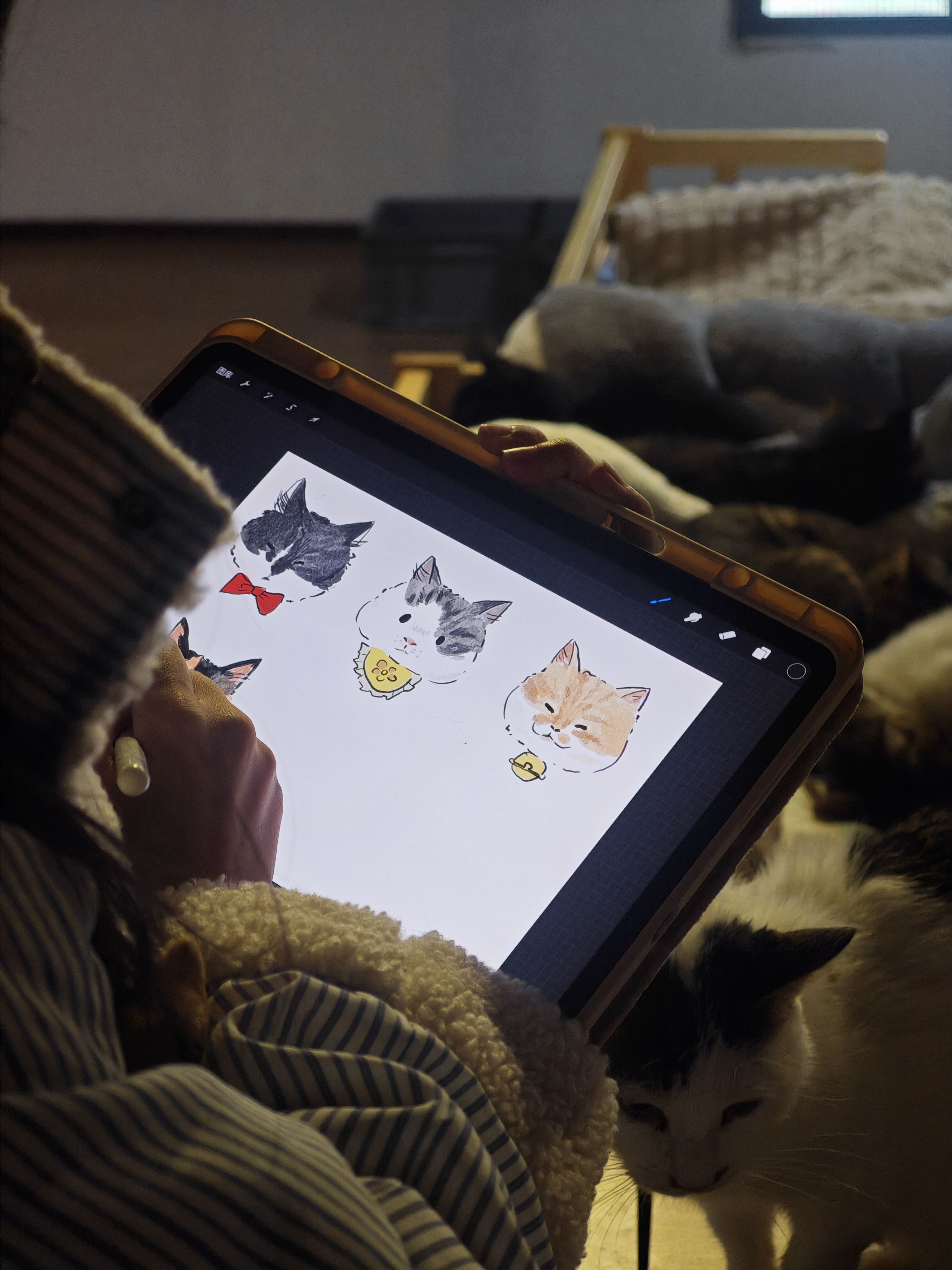 念头一来,说干就干,于是发起了「插画救猫计划」,对接了703猫咪基地,也就有了这次的探访,也很感谢插画师朋友们的响应,大家一起做点有意义的事,真的,蛮好。