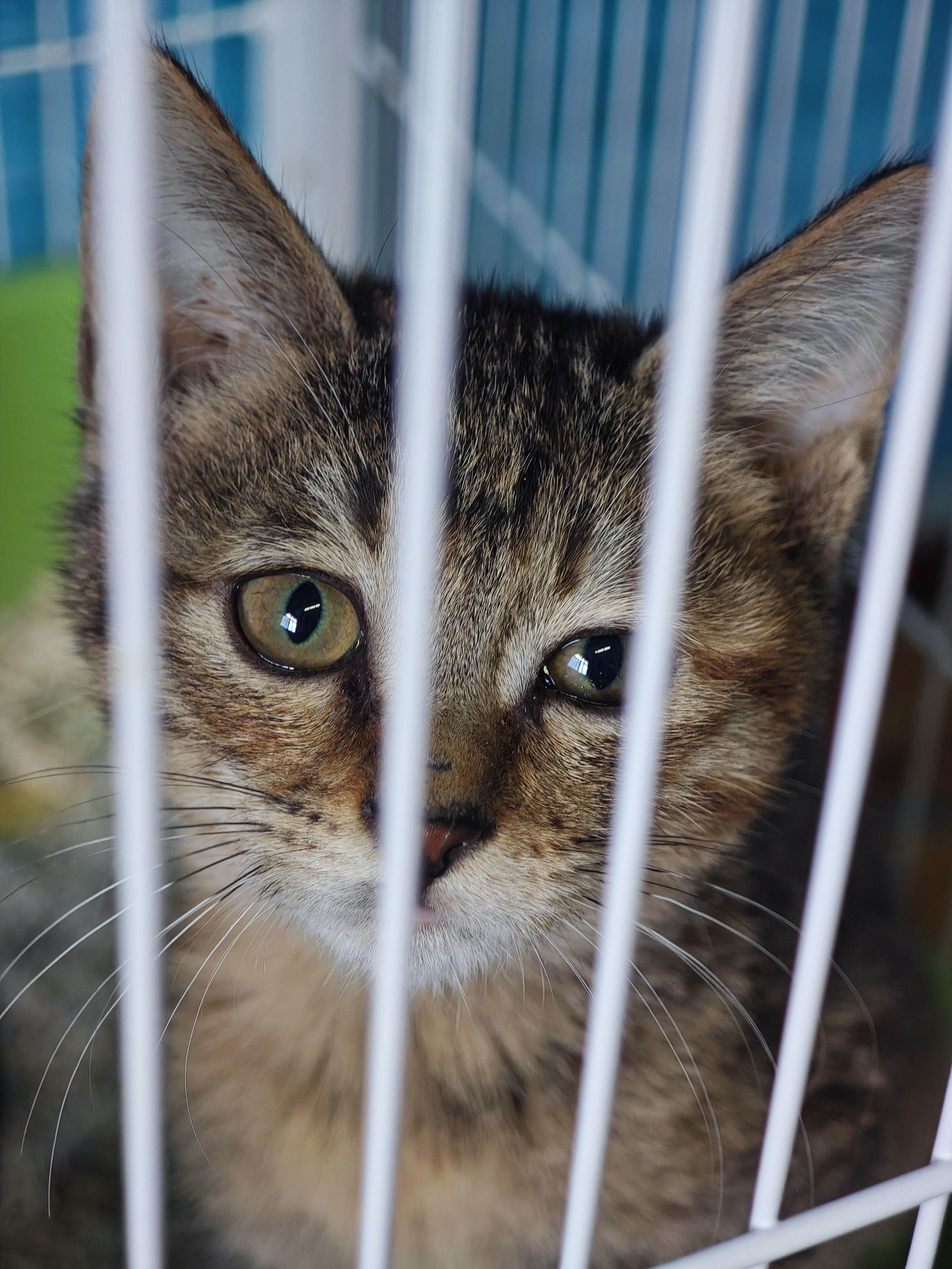 彪哥,猫如其名,武力值极高,平时爱好打猫,斗眼,耳微垂,由于喜欢打架,被关了“禁闭”(单独一个笼笼),基地另一位负责照顾小猫的楠楠说,它昨晚上自己开了猫笼子,在同一房间把另外一只猫打了,打得那只小白猫瑟瑟发抖,饭都不敢吃。