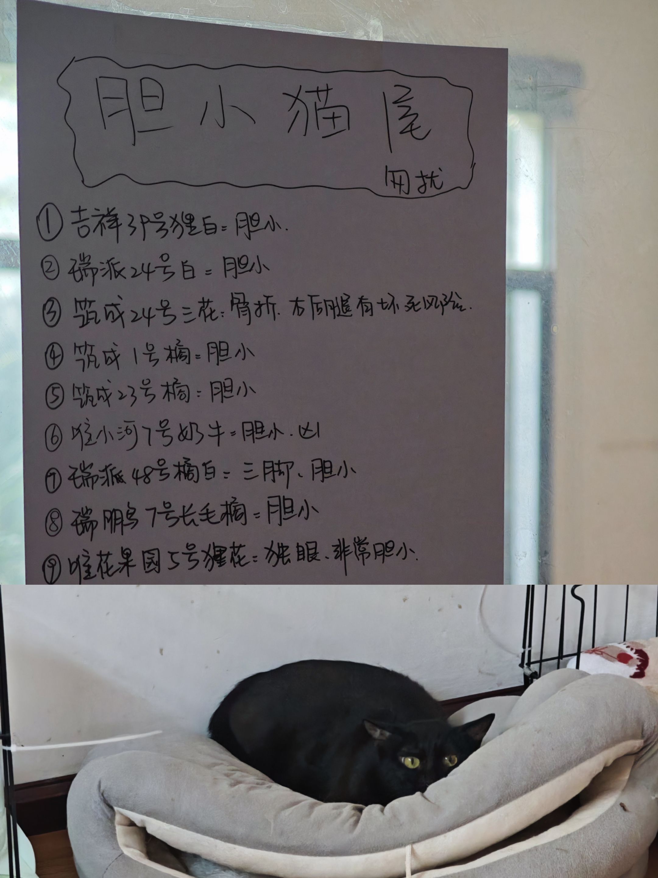 这个屋的小宝们,总是垂着尾巴和耳朵,一有风吹草动,直接缩成一团,要么就是飞跑,看不着,也难抓着。我进屋去的时候,有一只小黑猫,耳朵耷拉着,眼神胆小又可爱,特像哈利波特里面的多比。(图一)