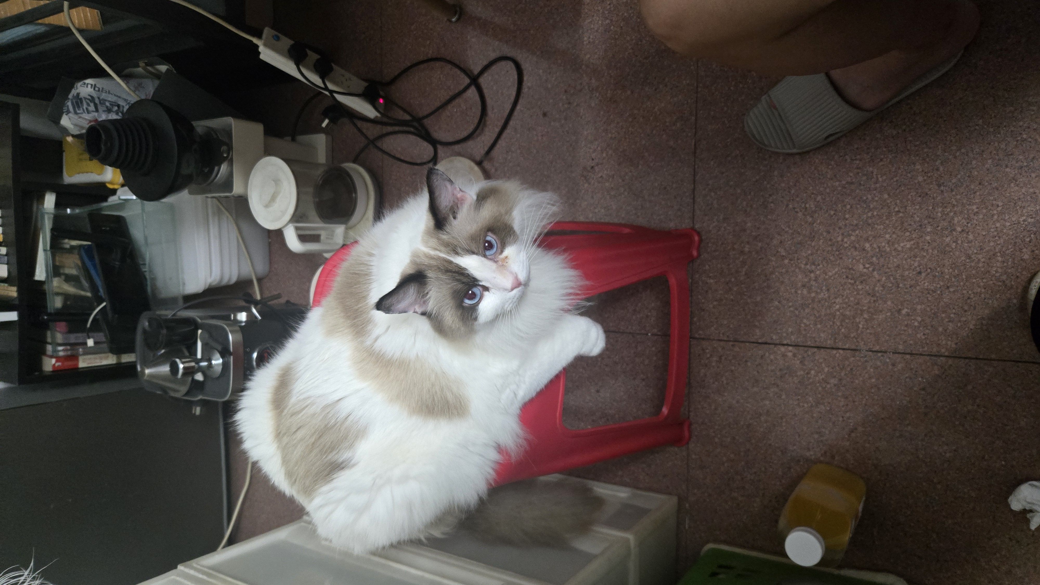 店里的男友拍了照,她好像喝了酒指挥男友给煮粉。