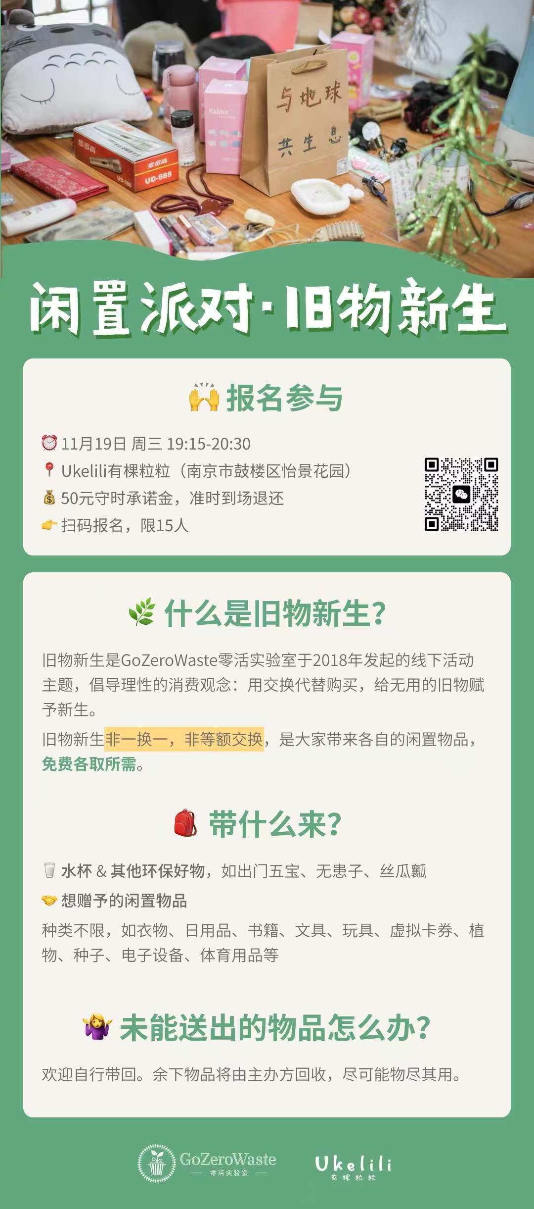 入坑可持续生活、成为一个线下活动组织者,已经满四年。我不是永动机,要细数给我添柴加薪的,第一个就是这里——一一来参加旧物新生没多久,就速速创造了一个旧物新生的日常空间。她将慈济迈皋桥环保点的部分场地改成了“惜福屋”,每周六慈济志工们“环保实作”,分拣可回收物时,大家就可以送去自己的闲置,也淘一淘有什么用得上的东西。