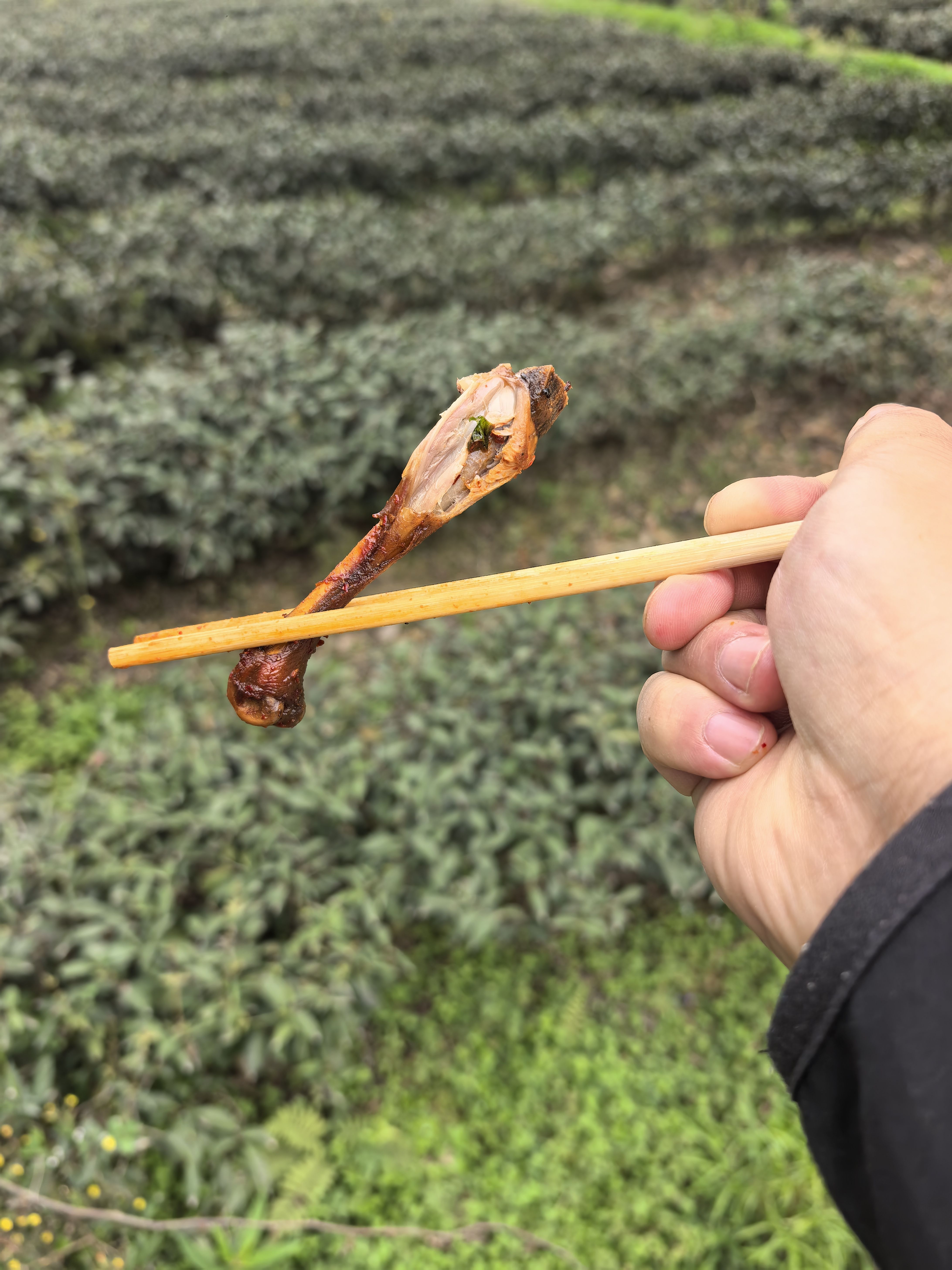 炸鸡腿6块钱一个,两个12块,好多茶都还没发芽不急不急