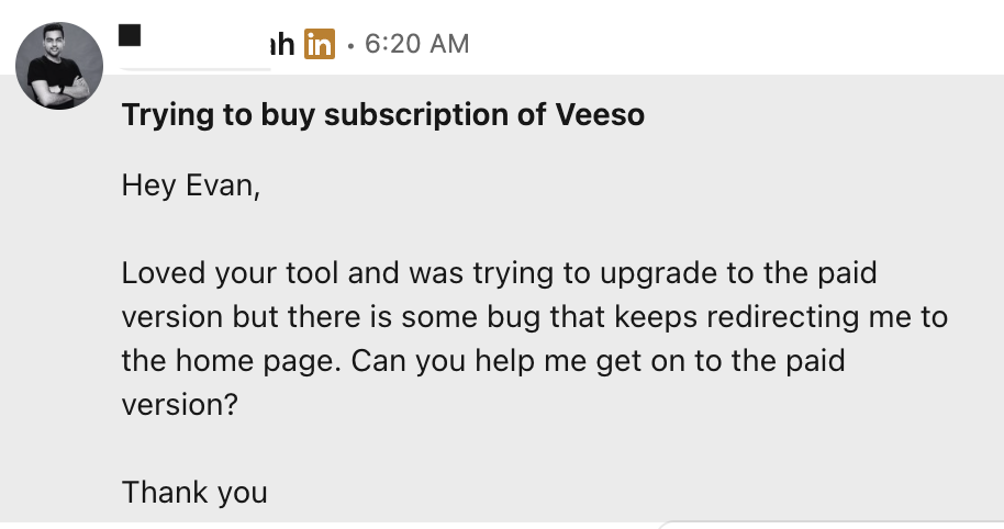 今日份开心应该是海外版产品还没正式上线,所以还没开支付功能,然后已经有用户来Linkedin 问我怎升级订阅了。