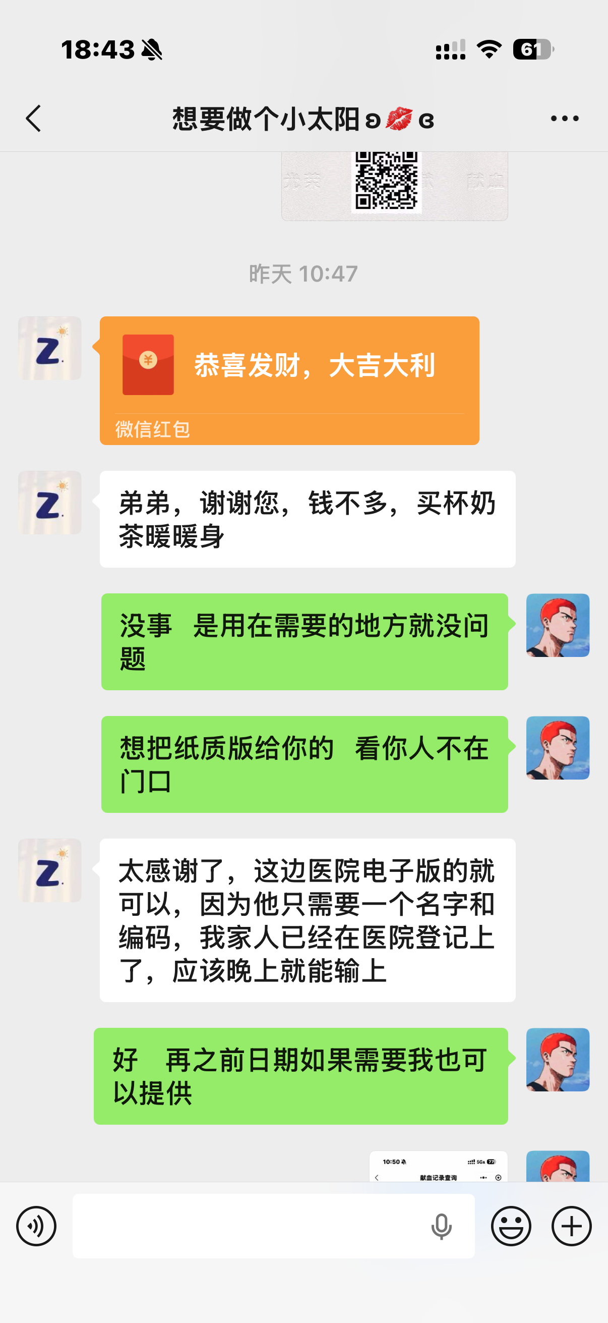 晚上又发我照片确认用上血了