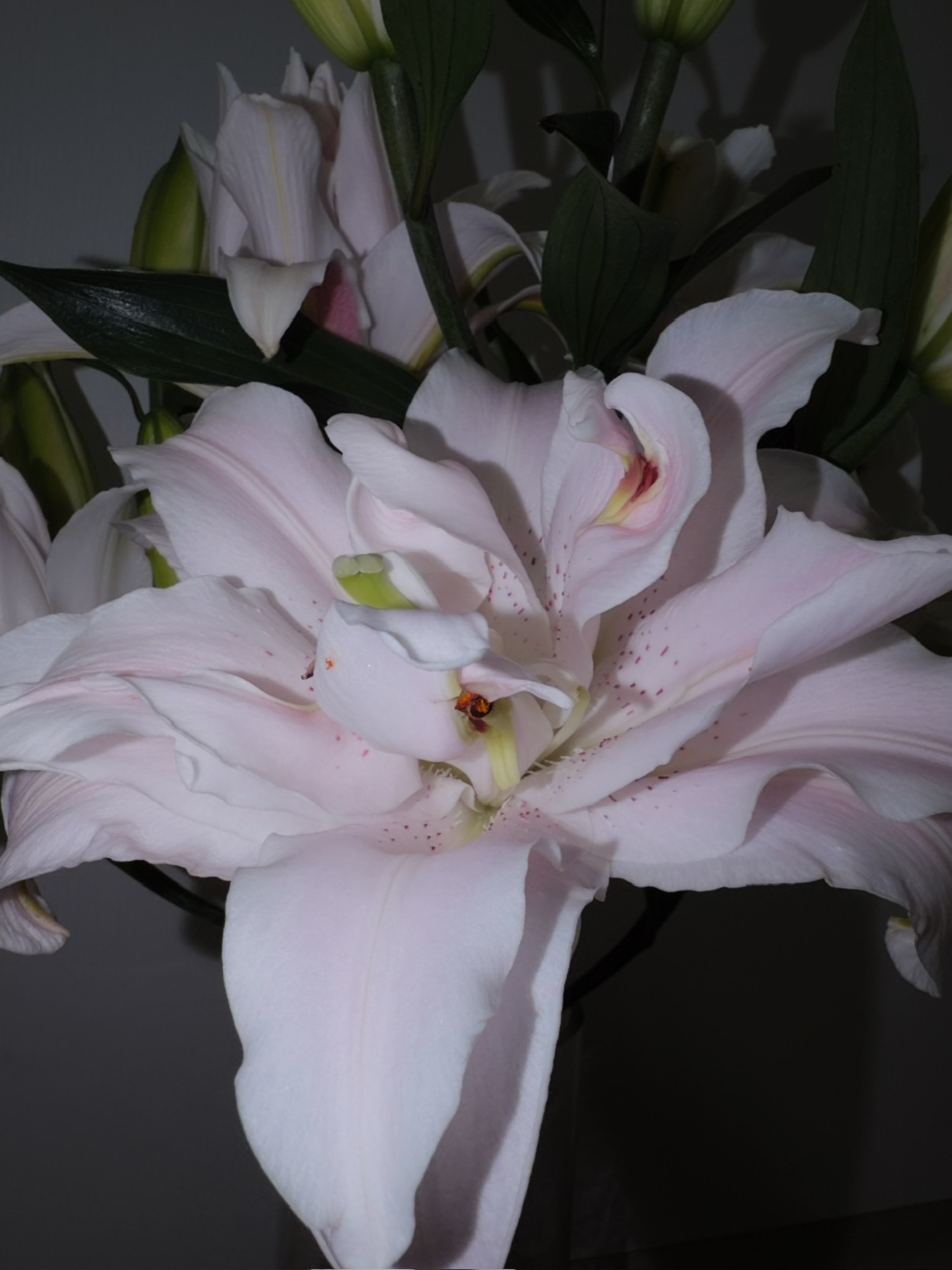 就我觉得康乃馨和百合特别好看吗!重瓣百合真的好美,香气也很特别,有淡淡的话梅调