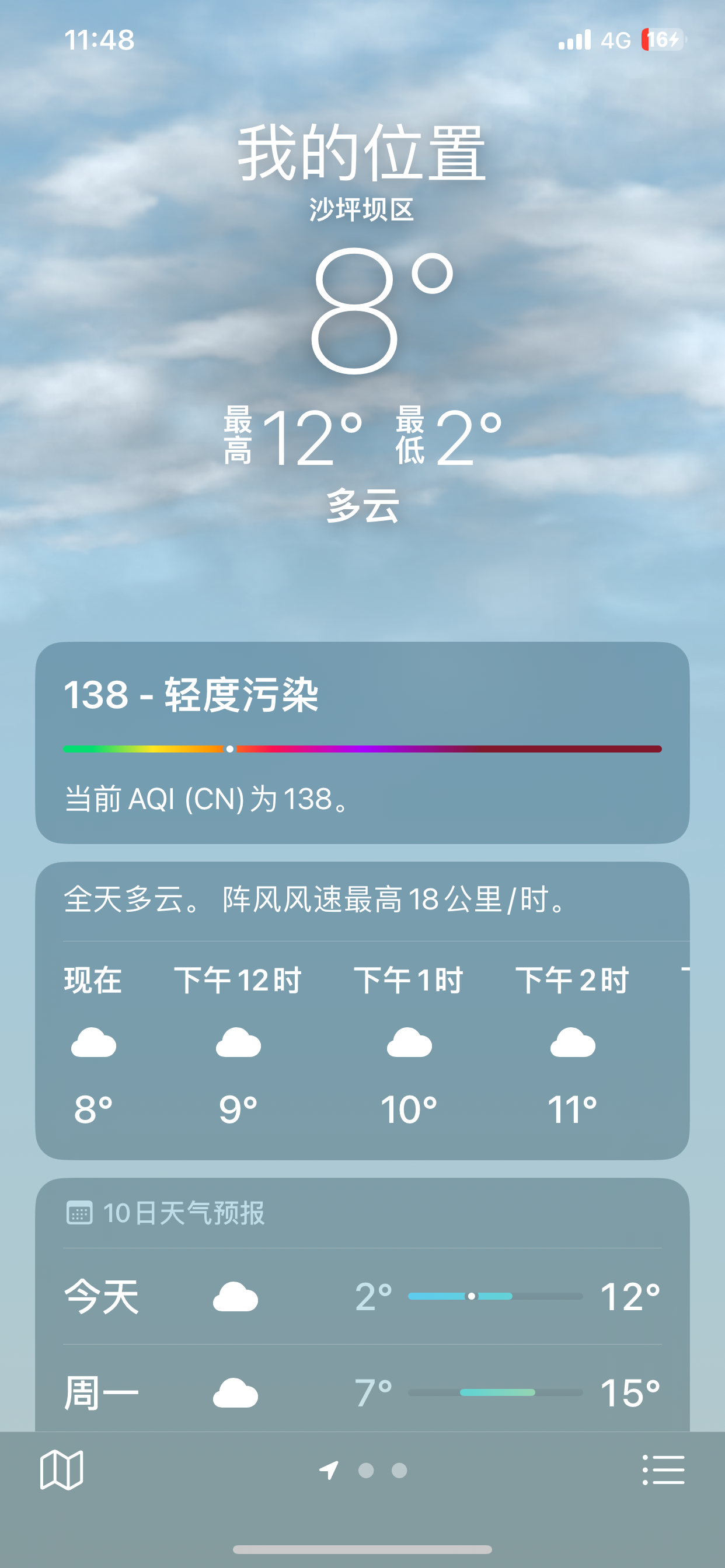 哈哈哈哈一觉醒来我咋身处ddk,点进去又恢复了哈哈哈哈。重庆的温度看似挺高实际上还挺冷的!不下雨的湿度都是80左右作为一个内陆城市也是很奇妙了。