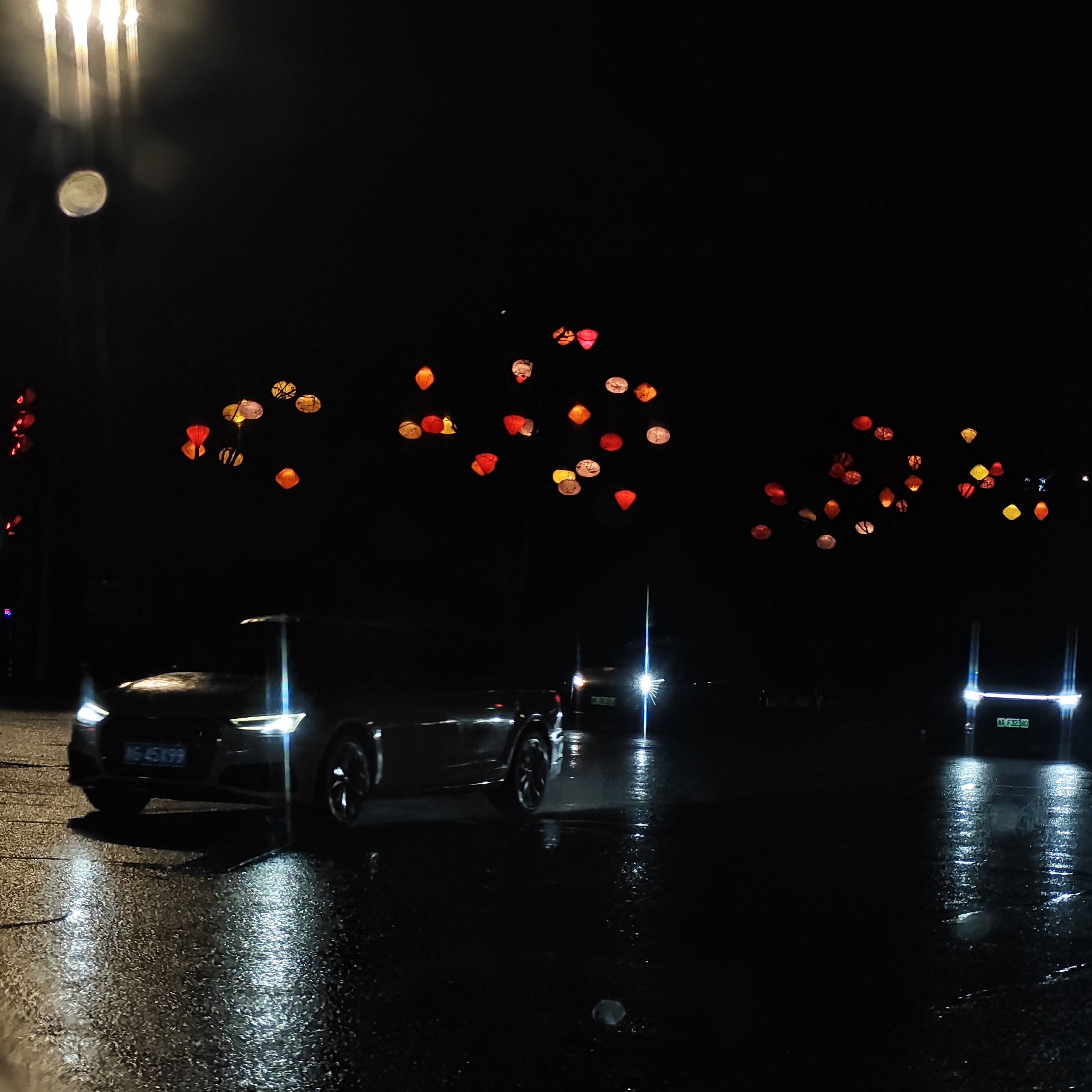 路边开始挂灯了