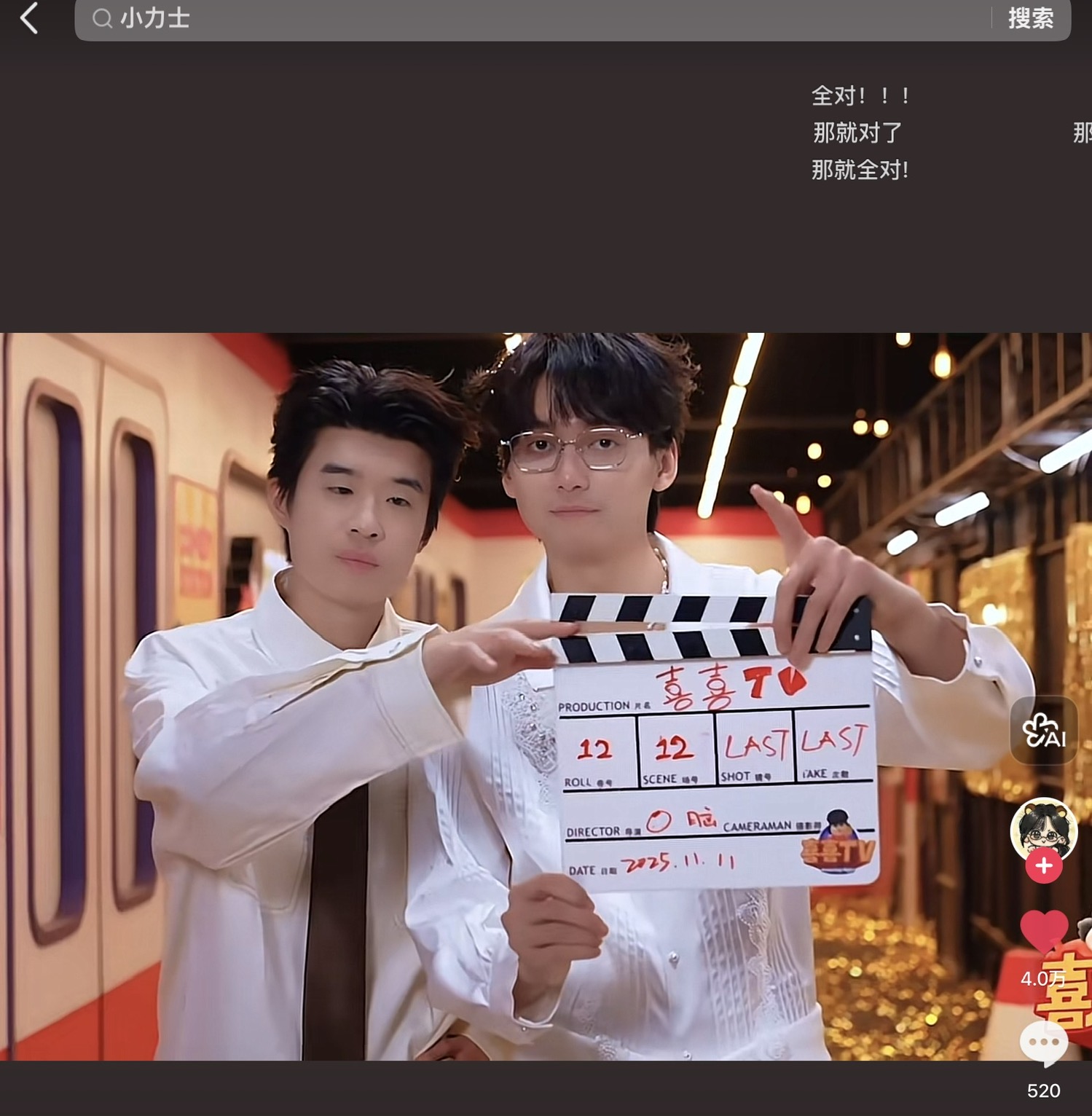 对不起老师,但是我今天真的嗑小力士嗑到不知天地为何物(╥﹏╥)张呈说最后一次录制结束准备打板,雷淞然就用手指挡着不让故事结束,你们是懂怎么杀人又救命的