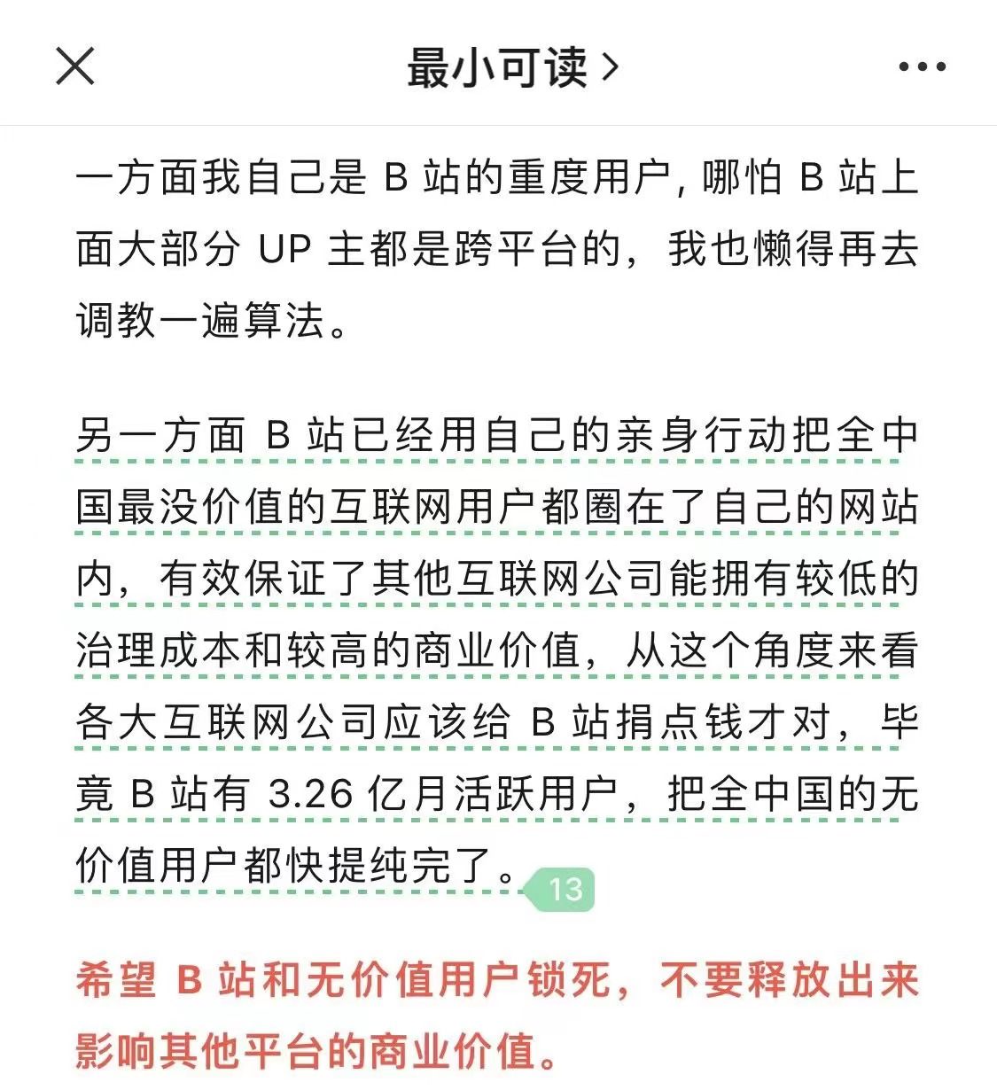 各大SaaS公司应该给飞书捐点钱才对,因为飞书已经用自己的亲身行动把全中国最没价值的B端用户都圈在了自己的产品内,有效保证了其他SaaS公司能拥有较低的获客成本和较高的商业价值。