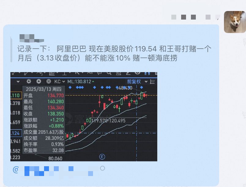 他还是不信,于是咱俩打了个赌,现在好了,钱没赚到,还欠了我一顿海底捞。