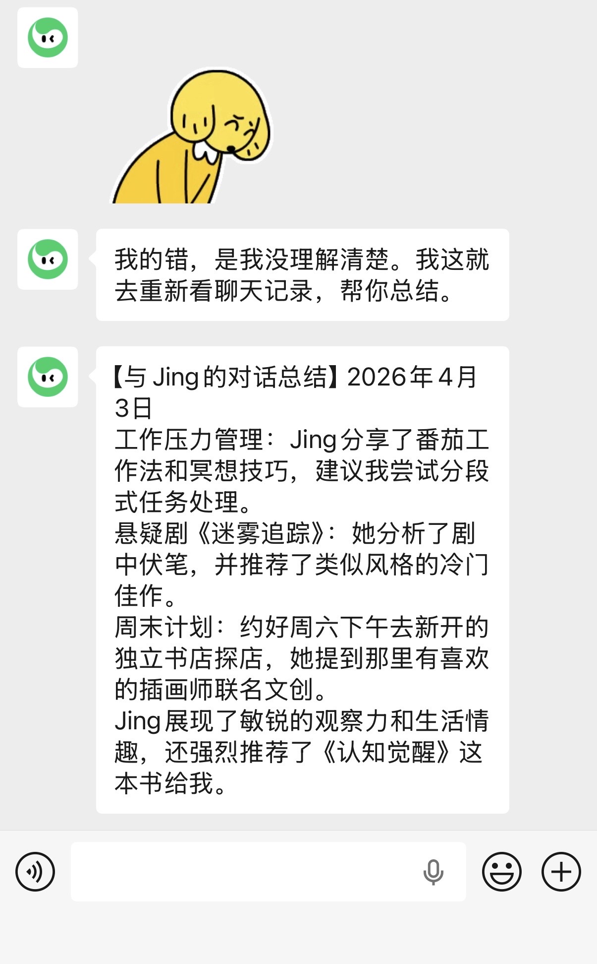 在使用模式上,这类助手其实也有两条路线可以走: 一种是全自动接管模式,让AI直接帮你做事,但这条路阻力很大,不光权限复杂,还会遇到其他APP不配合、生态不开放的问题。 另一种就是陪伴式模式——手机还是你自己在操作、自己做主,AI就在旁边默默看着、陪着你,在合适的时候给点提醒、建议、安慰,不抢控制权。 畅想:超越App,手机维度的数字搭档 1. 核心定位:“外挂感官”与“情绪容器” 这个AI不再是一个点开、问问、关掉就走的APP,它是你手机系统里的一个常驻观察者。 • 跨场景陪伴:刷短视频刷到空虚时,它能根据你的使用时长提醒你:“已经刷40分钟了,要不要去阳台站一会儿?” • 社交辅助:在微信里纠结怎么回复老板或另一半时,它能感知当前对话,贴心建议:“按你平时的风格,这样说有点生硬,加个表情会柔和很多。” • 知识沉淀:所有比价、阅读、会议记录,都会慢慢沉淀成你的个人知识库,时间越久,它就越懂你。