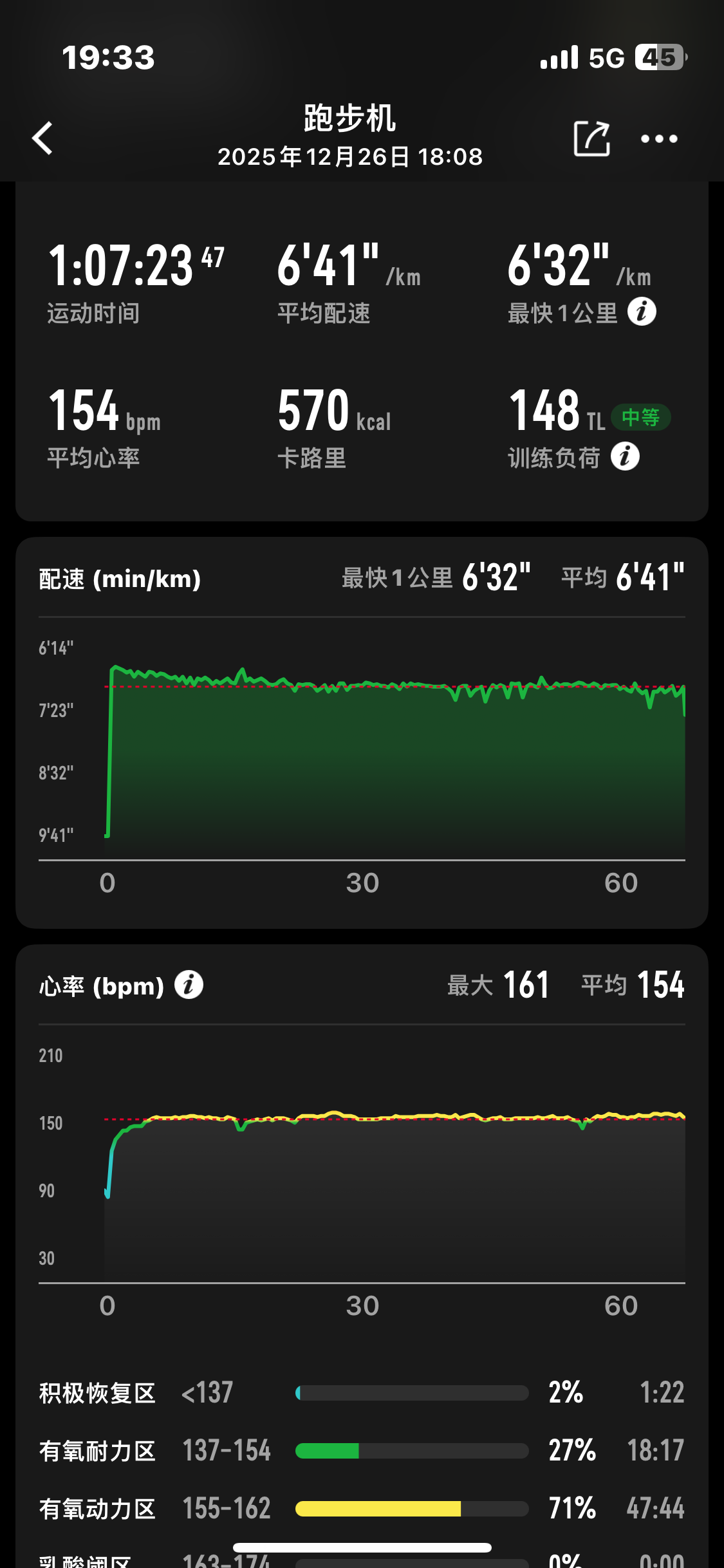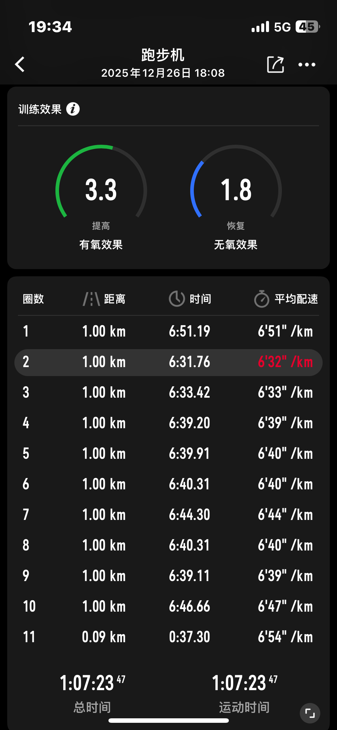今天跑步机 超级有氧了