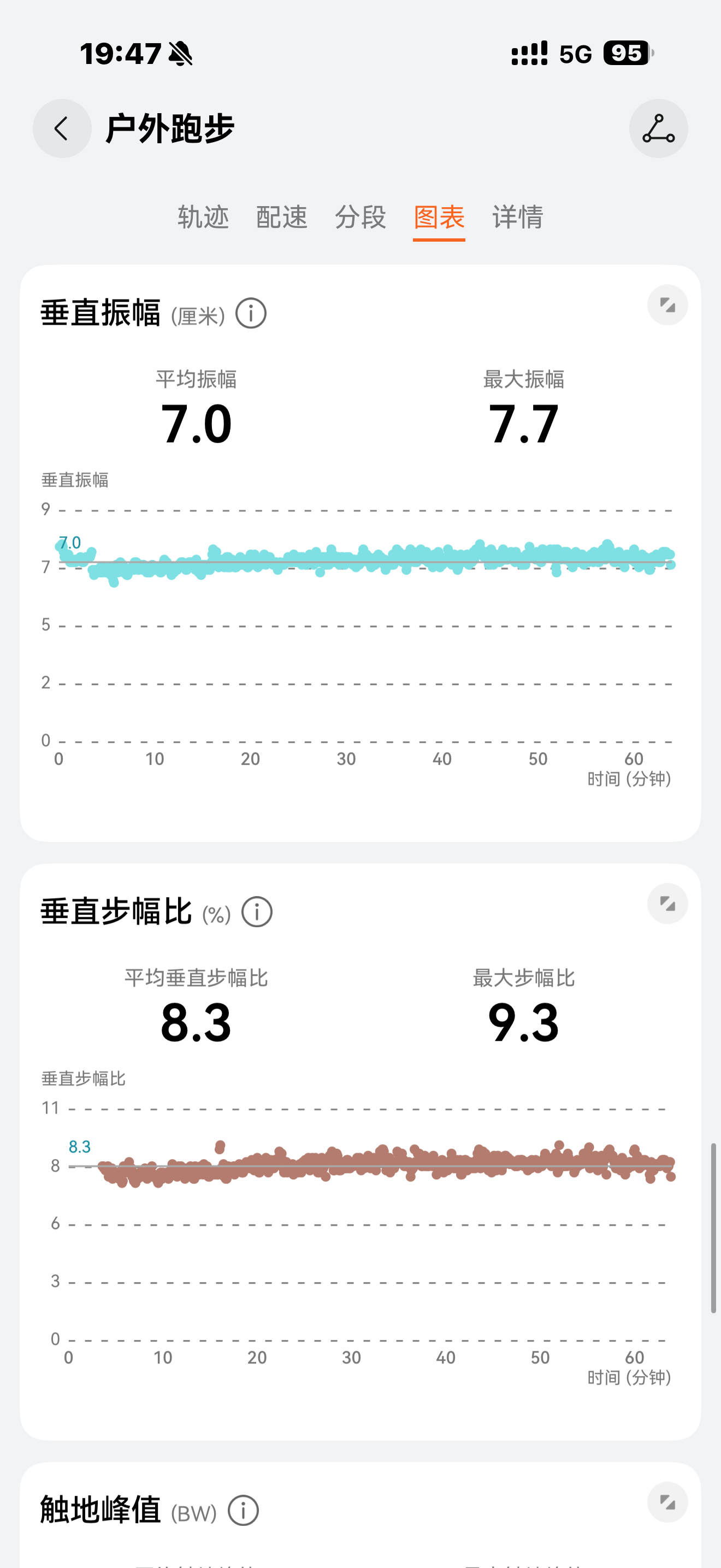 3- 因为S-TAG的加持,在运动数据如后几张图表所示,会更加清晰详细,苹果表应该有数据,但在健身app里显示不全面,换到keep开会员后可以更清楚呈现;