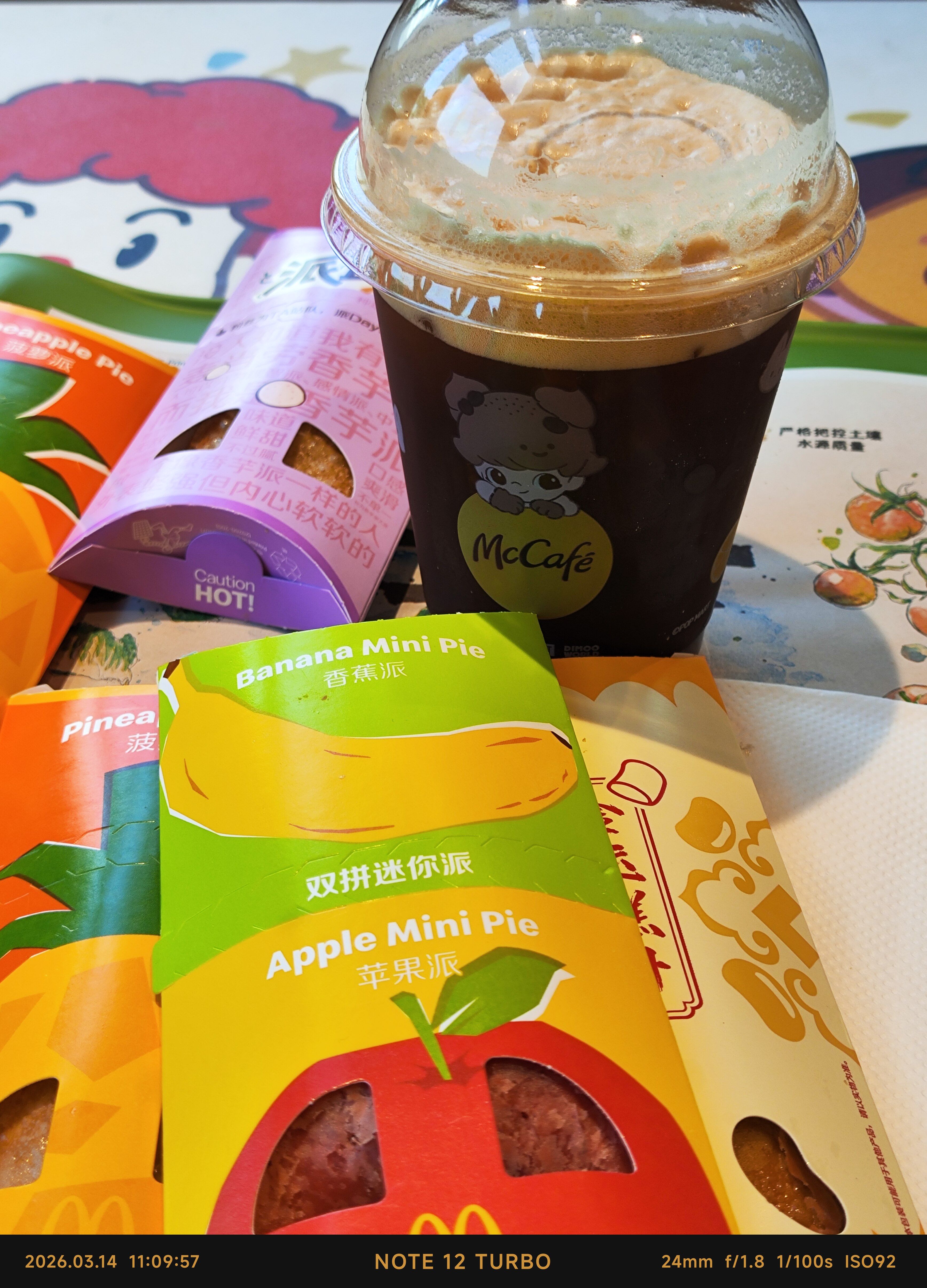 麦当劳派Day,点一杯萌橘醒醒气泡美式,也是和泡泡玛特联名的新咖啡饮品,一口杆橘甜味,果味十足,混杂美式的一点点苦味,非常爽口的果咖,点赞一下。