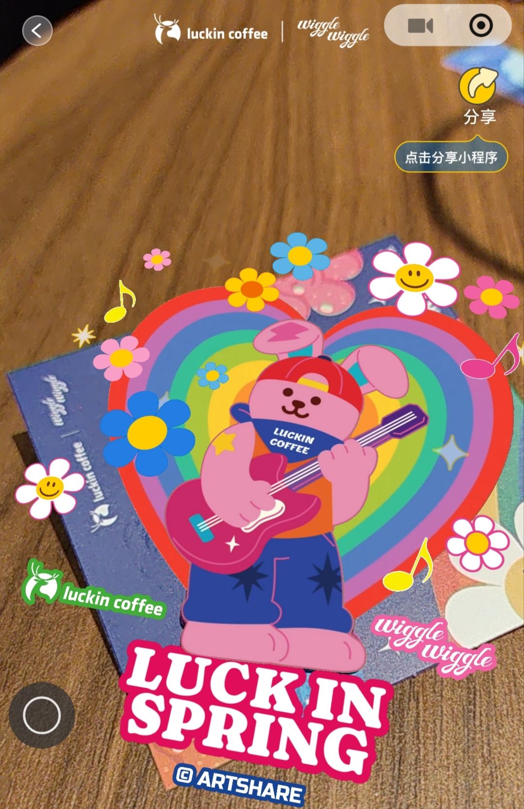 wiggle联名兔子徽章,还有相关AR瑞幸玩法,体验了一下,真不错,点赞一下。