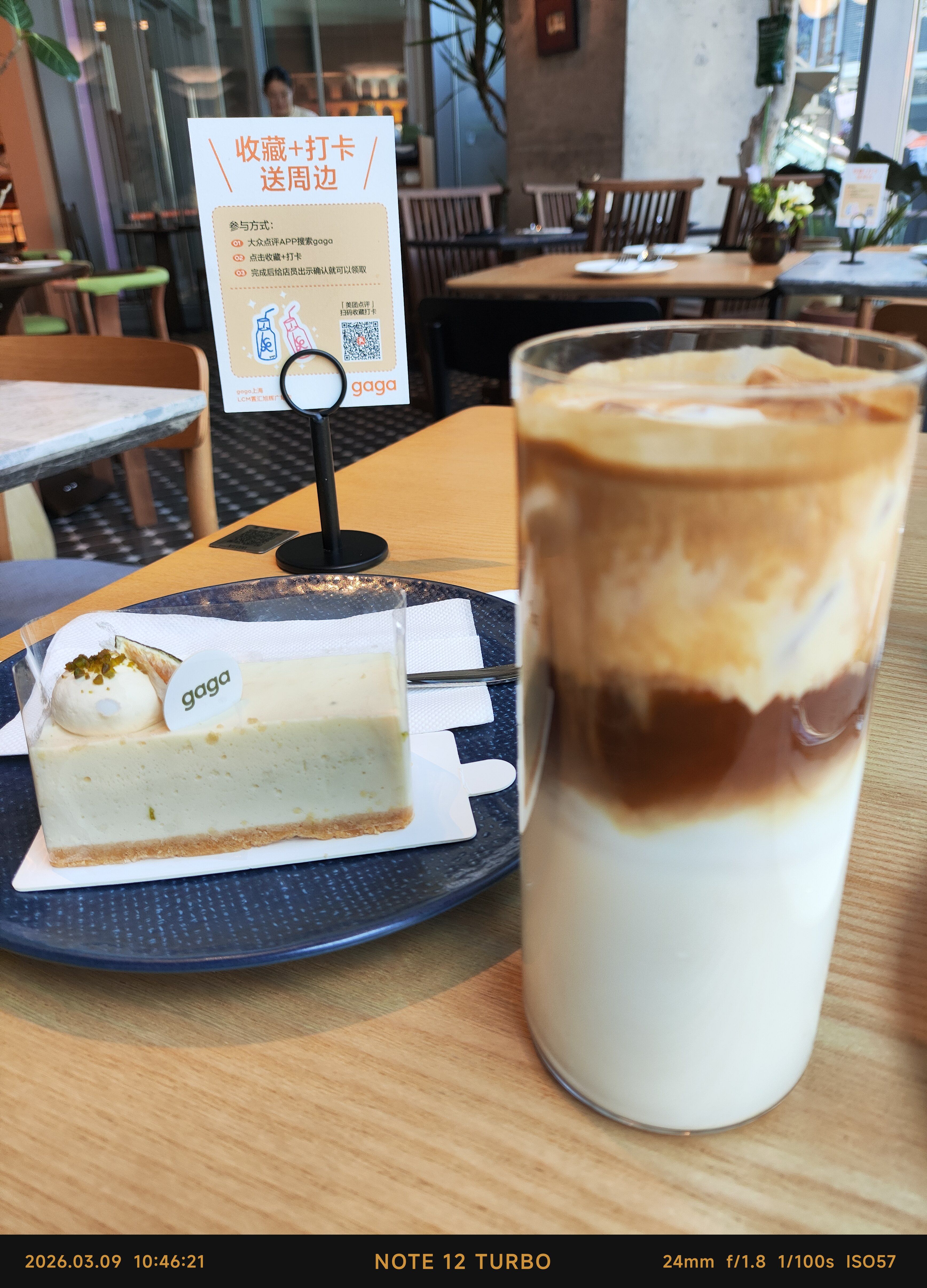 Gaga餐厅的Gaga咖啡,Salted cream coffee,浓郁的芝士香味,一口海盐的咸甜,配上拿铁的咖啡香苦,味道很不错。分层清楚,很有视觉感,下层奶味十足,再和香水柠檬芝士的酸甜味一配,味道中和得蛮好。点赞一下。