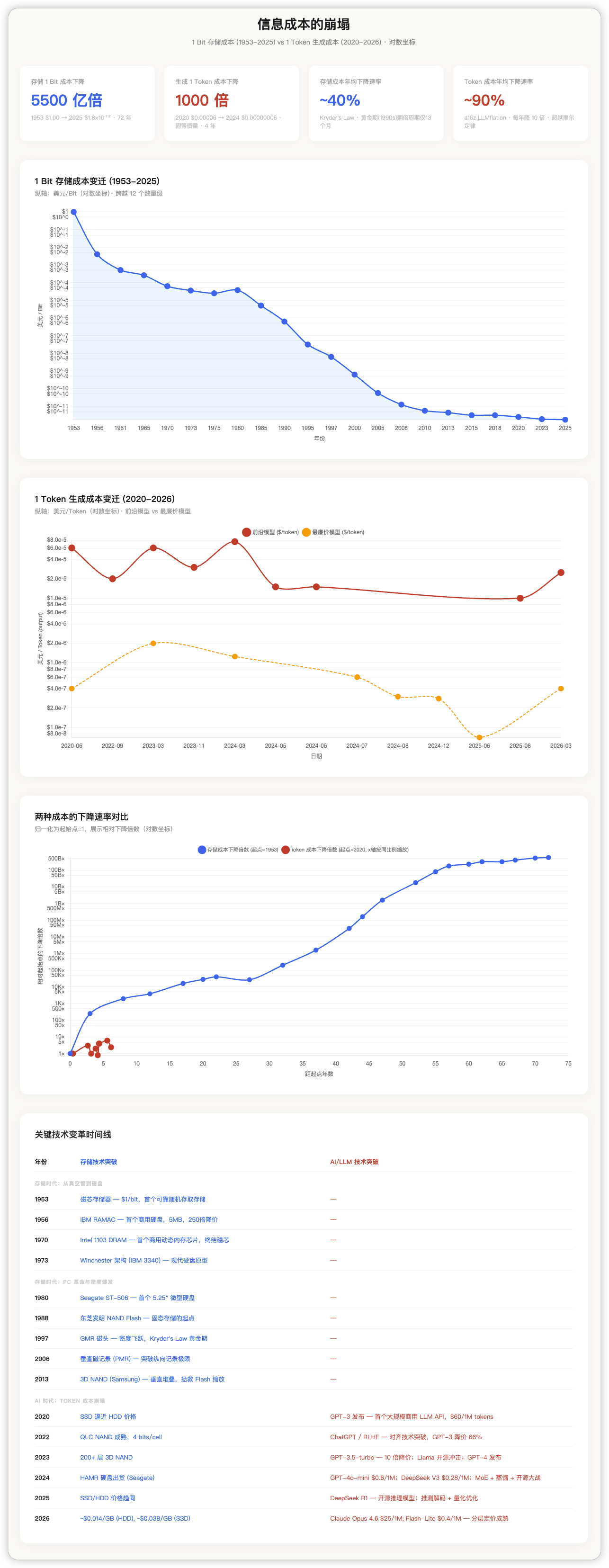 回看过去70年,1 bit 的存储成本变化曲线。