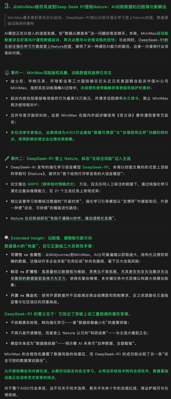 于此同时,因为时间上正好搜到Deepseek R2的无标注训练、合成数据上的突破,觉得其实可以给未来因为训练数据备受限制和缺乏的环境带来一丝曙光,在我的视角下,如果这样的技术成为主流,minimax之类的模型也就不需要再铤而走险的同时还能省不少钱,普大喜奔。