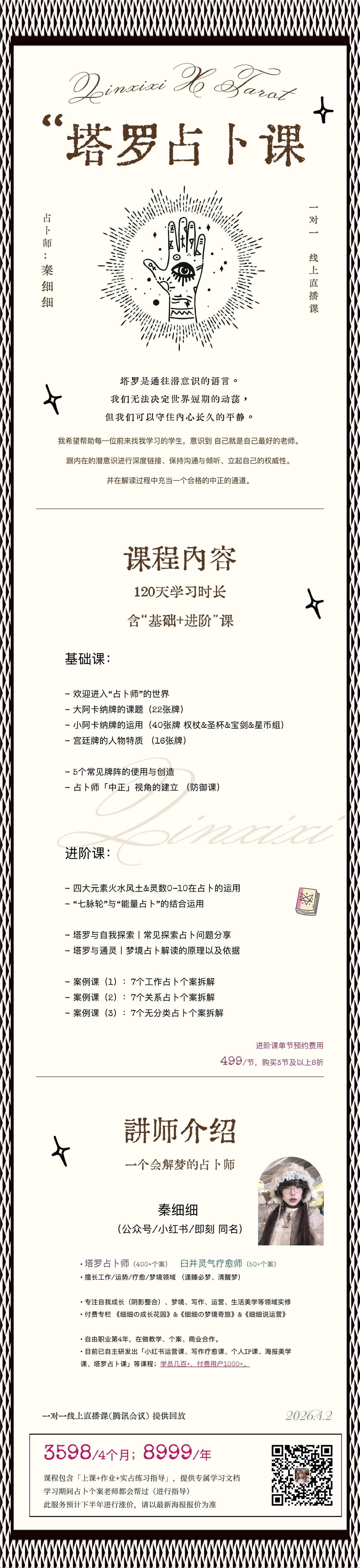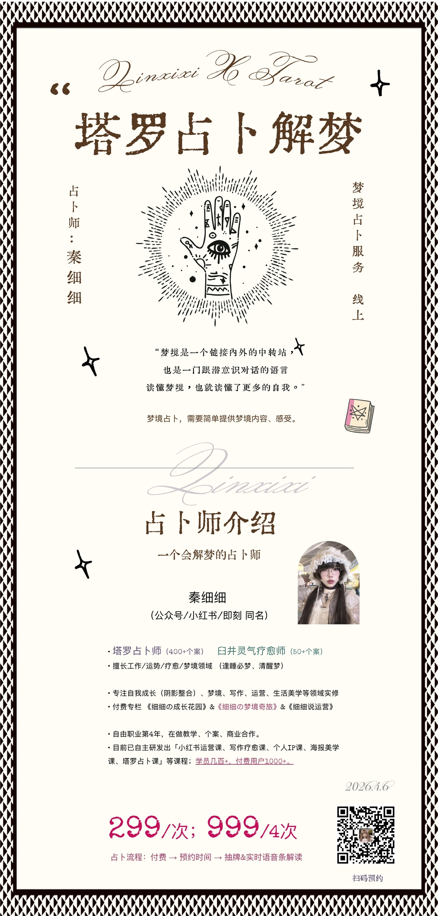 @秦细细,塔罗占卜师,灵气疗愈师,坐标深圳,自由职业第4年。
