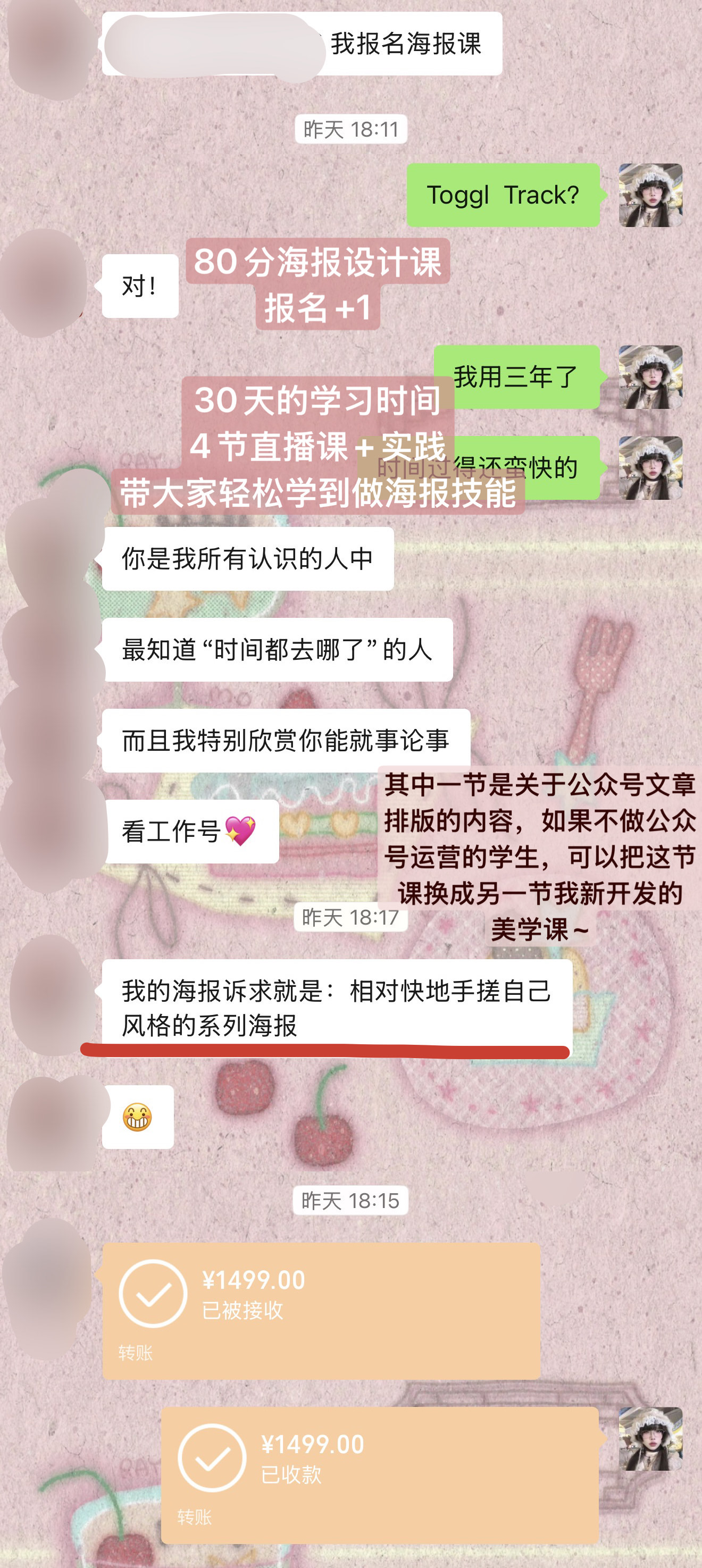 其中一节是关于公众号文章的内容,如果不做公众号运营,可以把这节课换成另一节我新开发的美学课~