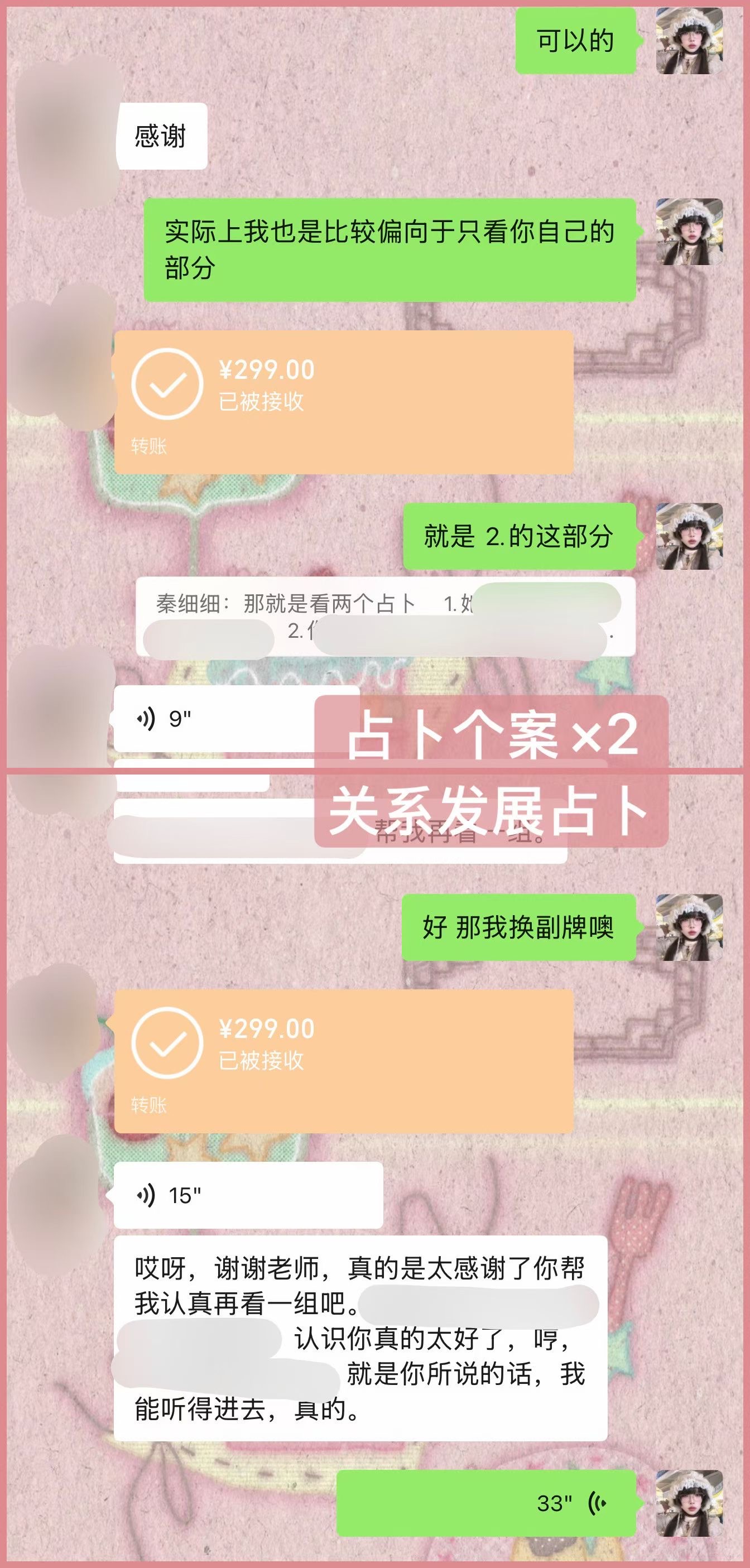 - 三个占卜个案 (其中一卦能量状态占卜为赠送)