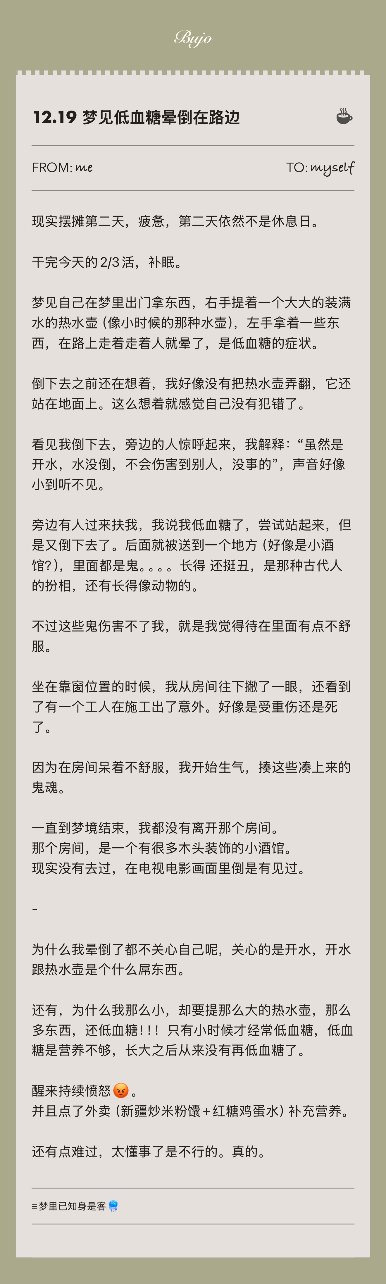 图⒌ 2025.12.19 梦见低血糖晕倒在路边(阴影整合梦境,鬼是阴影)