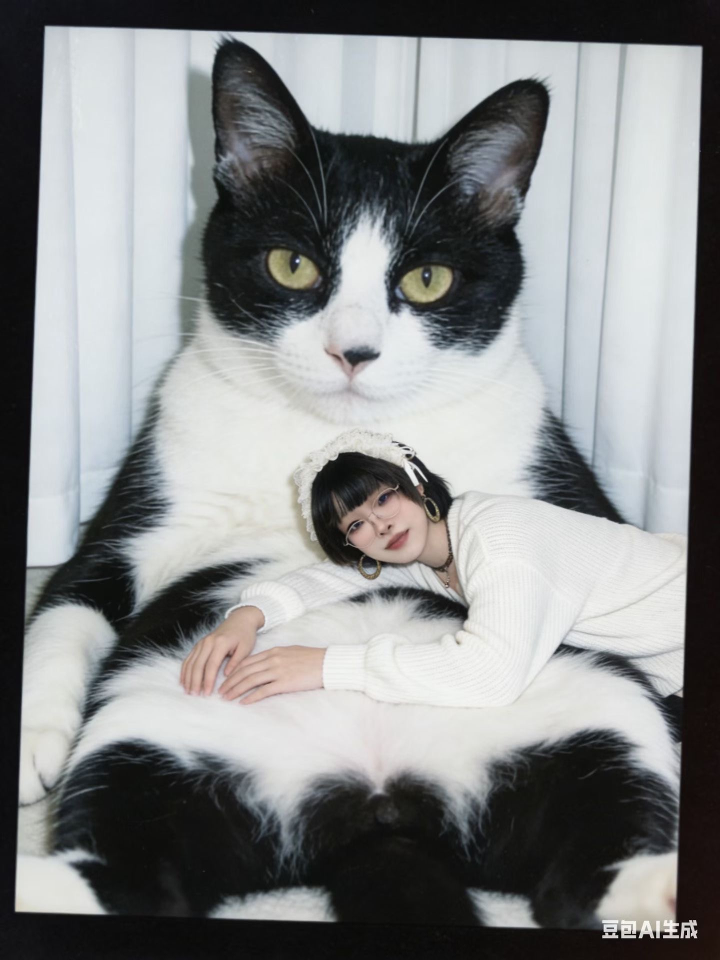 换成人物躺在猫猫怀里 猫猫比人大10倍