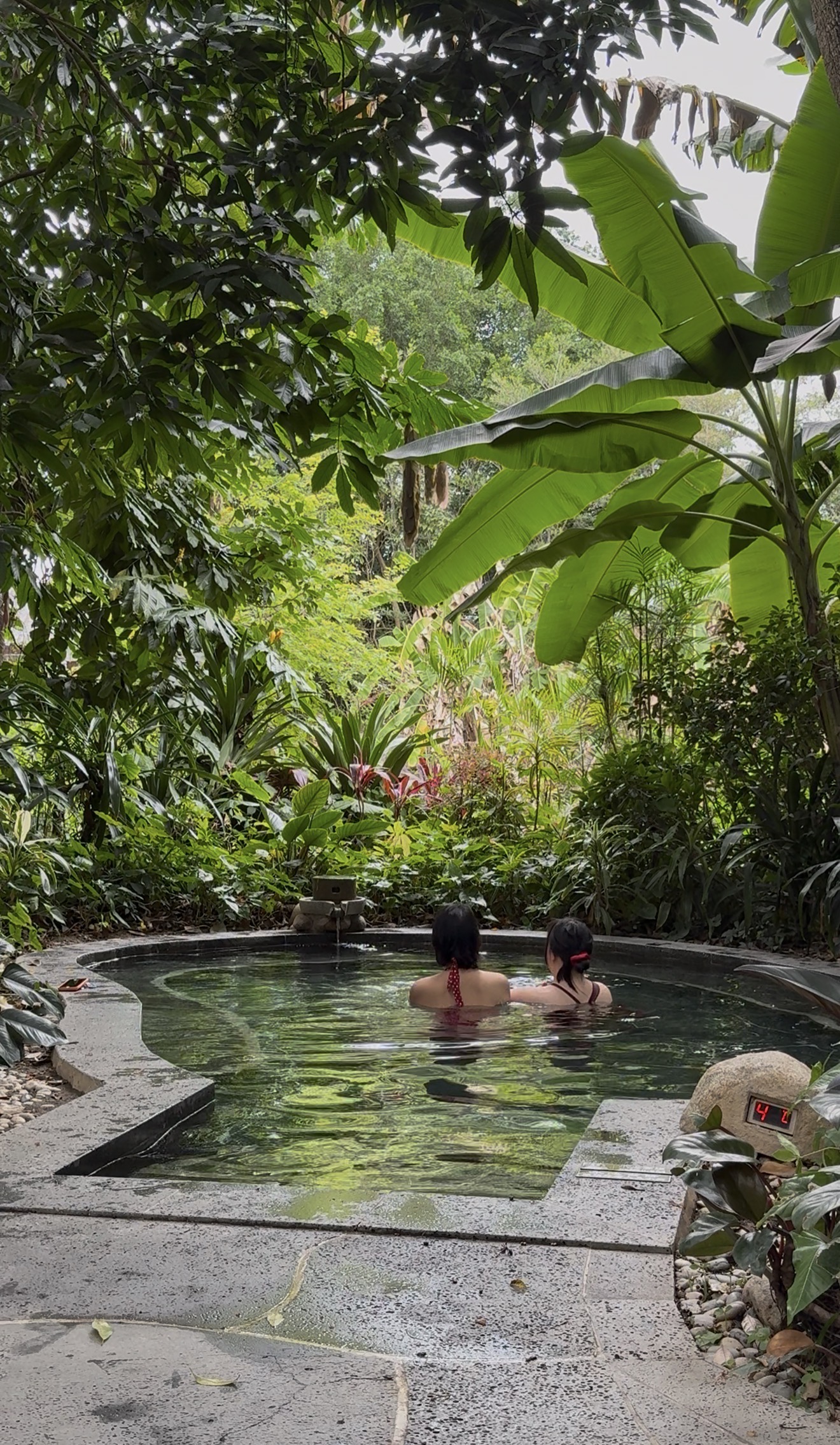 这会儿我们准备去吃饭,晚点泡温泉。