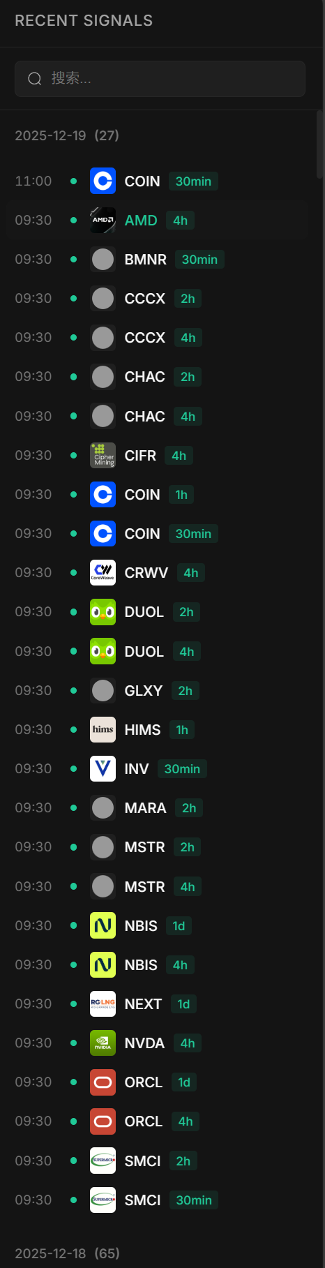 举例:11月21日,美股在30分钟,1小时级别有集体的反弹信号。