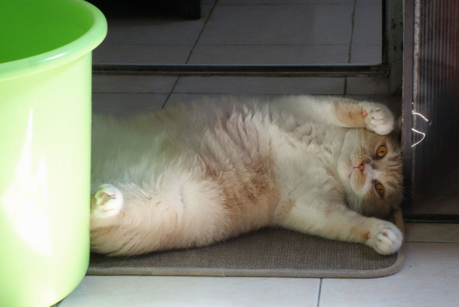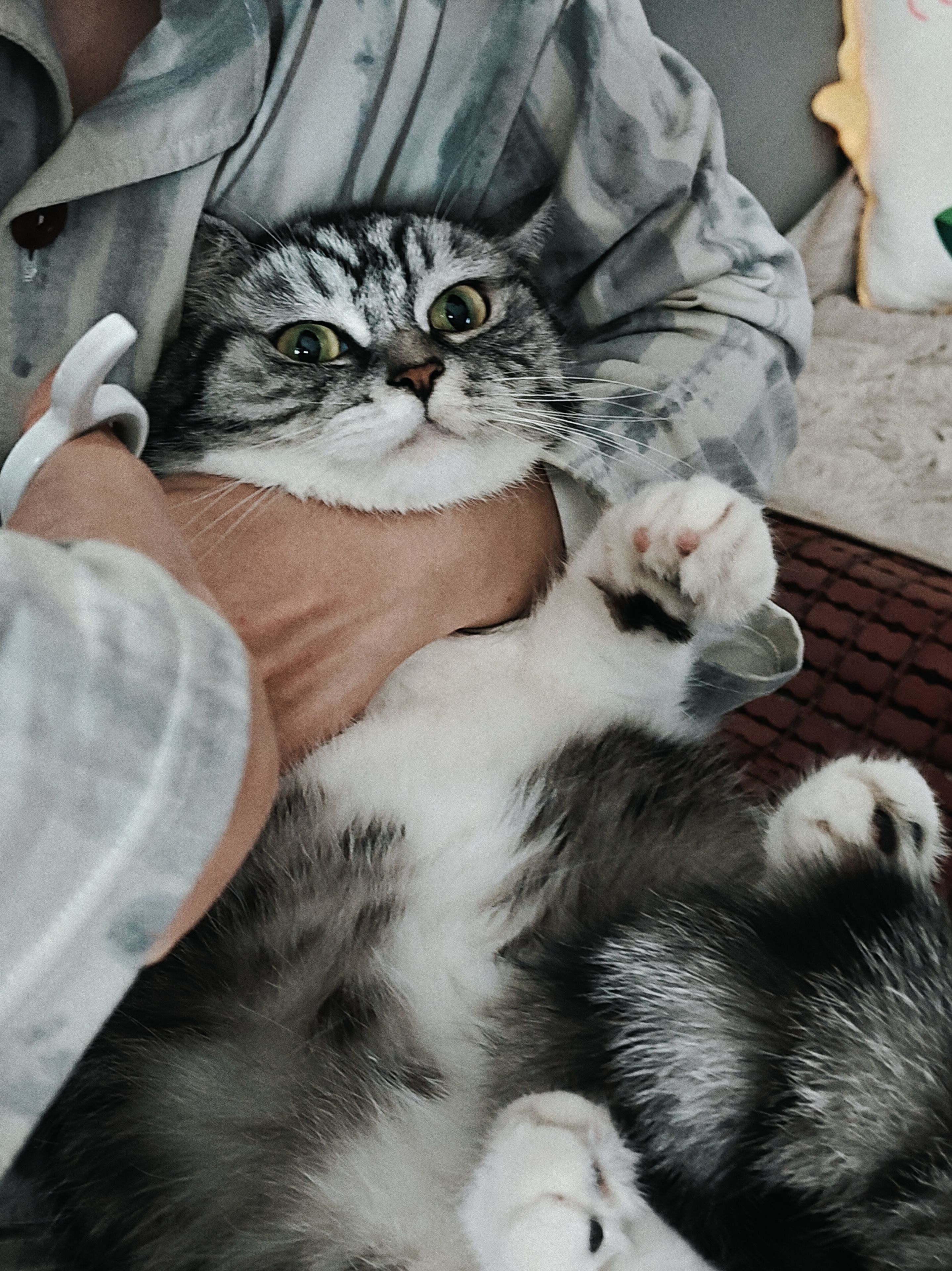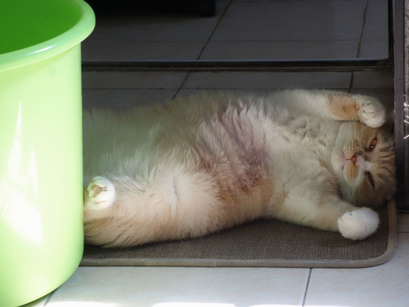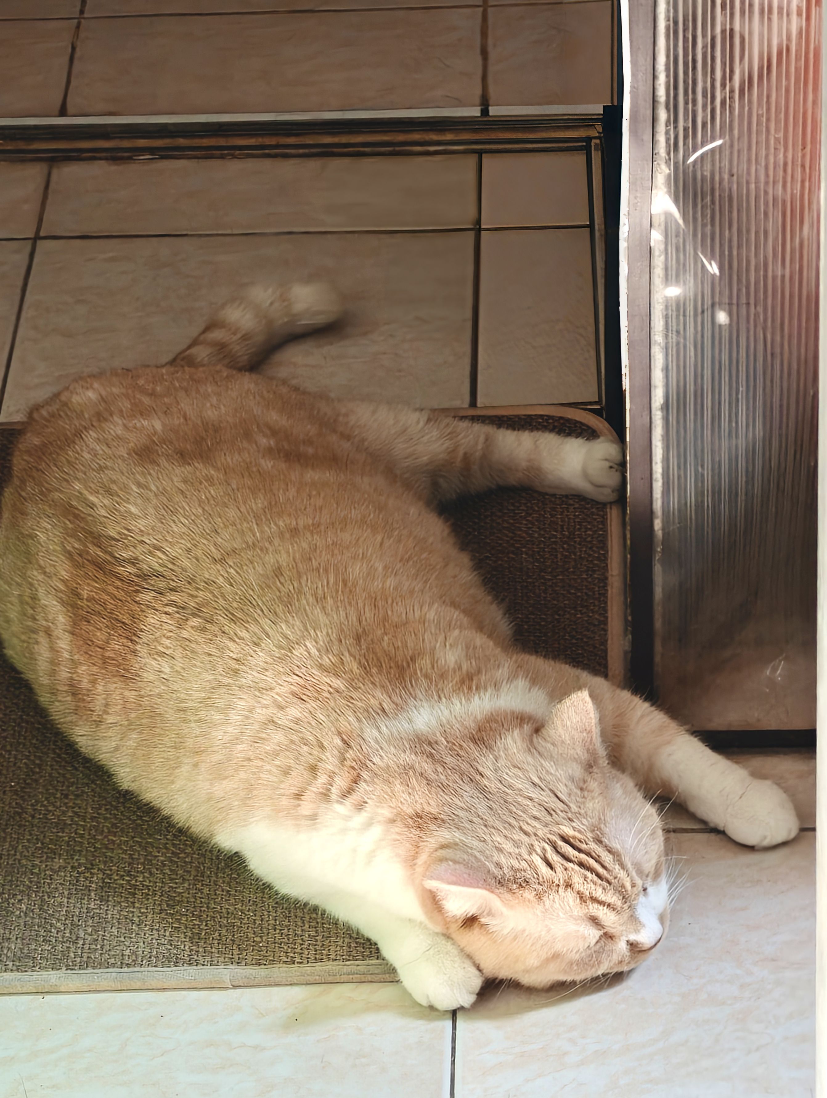 话说这个猫怎么像狗狗一样,直接趴在地板😂