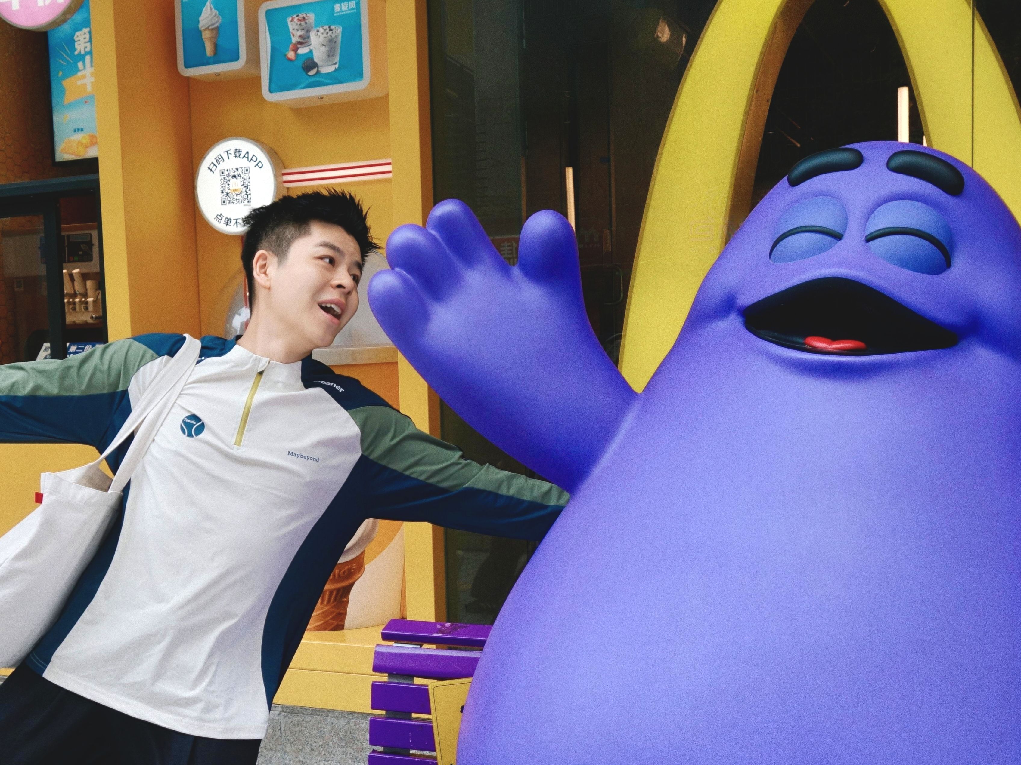 走到西门口的M记见到了奶昔哥哥他在开心大笑😄