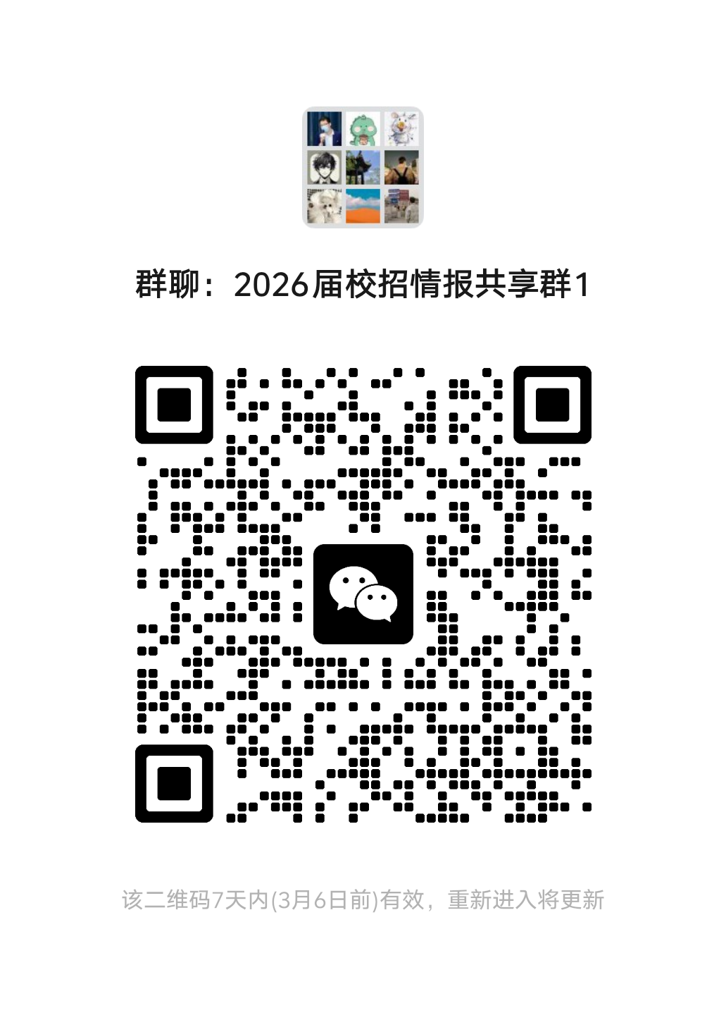 夏水贤: 一年之计在于春,求职之重在春招 研究生分数线即将公布,春招已经陆续开启🔛 本群将同步企业官方的春招信息 基于自己10年多校招关注的诸多校招公众号 (以前校招研究和对标的一些案例) 以及行业同仁的朋友圈招聘分享信息 (各大高校老师或校招同仁,供应商等) 3月还将邀请资深HR对谈,为你的春招“支招” 本群免费,无广,分享校招的信息和问题答疑 有需要的可进