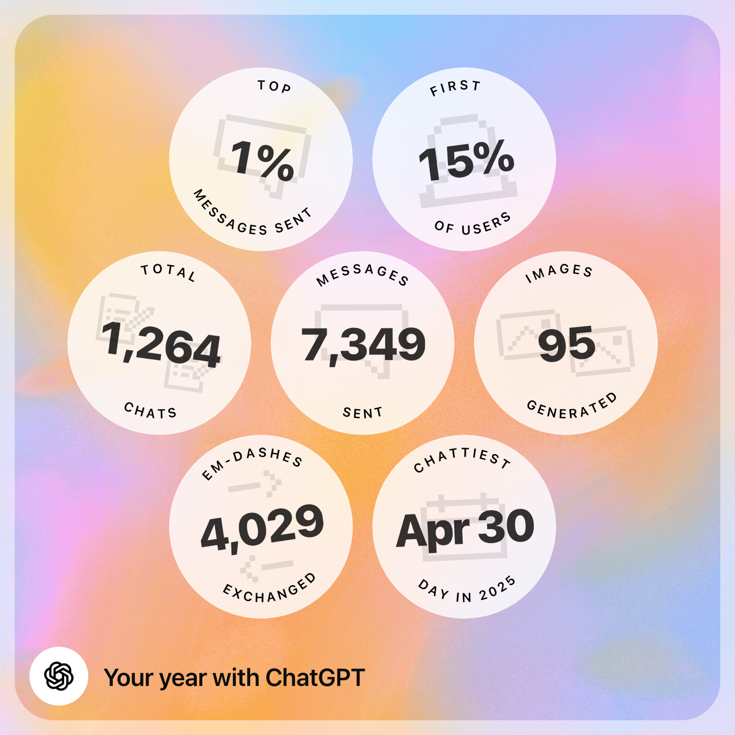 刚打开 Your Year with ChatGPT,设计和交互挺讲究的,就是没想到发送消息维度能排上 Top 1%😂