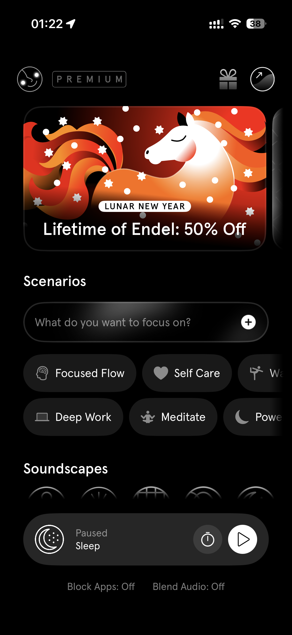 3. Endel App:睡眠白噪音,平时就设定1小时后自动关闭,它帮助我很快进入到大脑放空的状态,避免胡思乱想。
